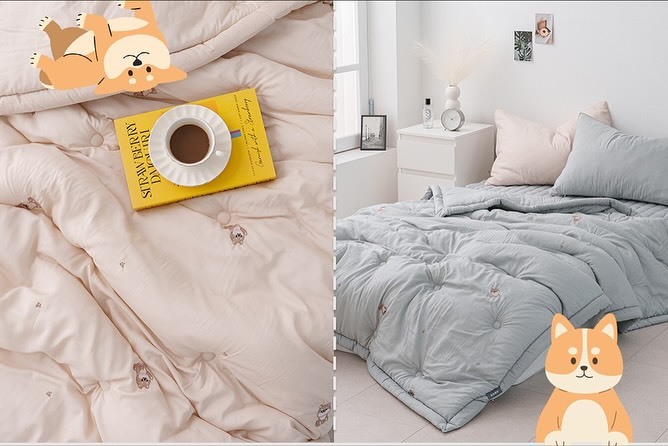 [韓國棉被] 天絲莫代爾・栗米棉填充|可愛柴犬刺繡 四季被 3色