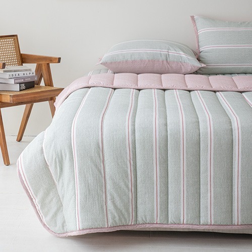 [韓國棉被] 天絲莫代爾・栗米棉填充|粗幼拼色直間 薄被 四季被 3色