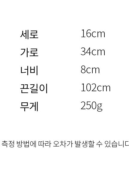 Size : 16 x 34 x 8 (cm) / Strap : 102 (cm) / Weight : 250 (g)