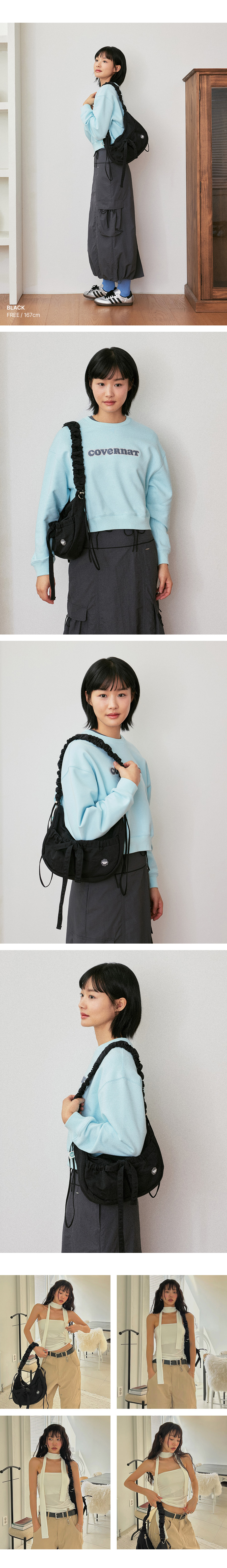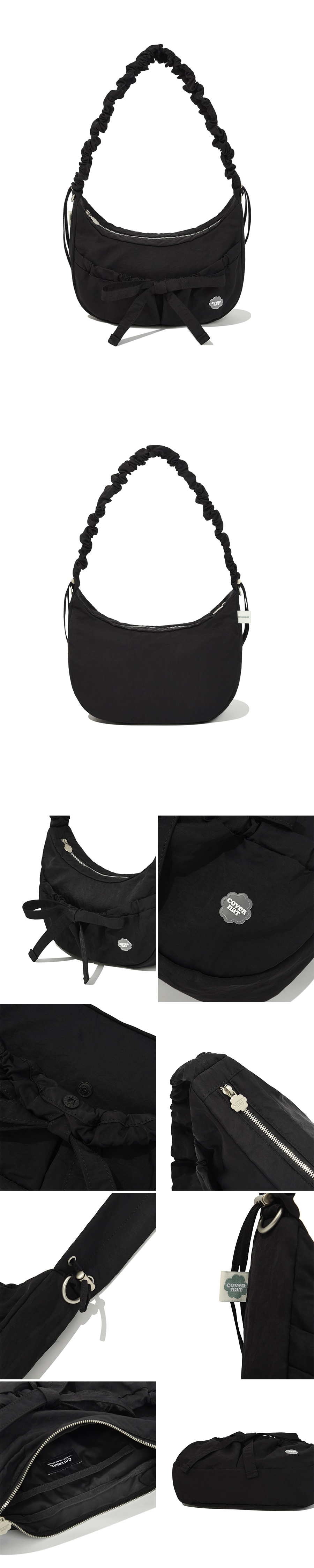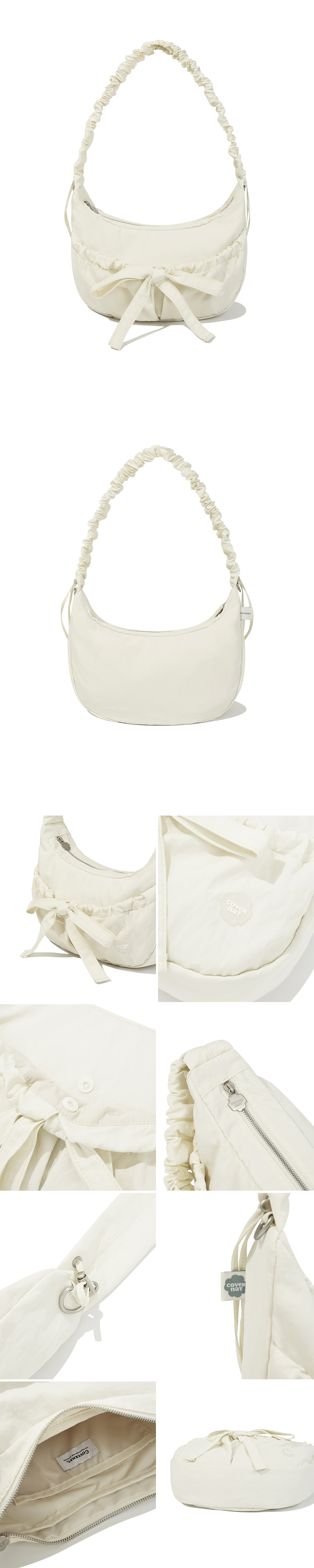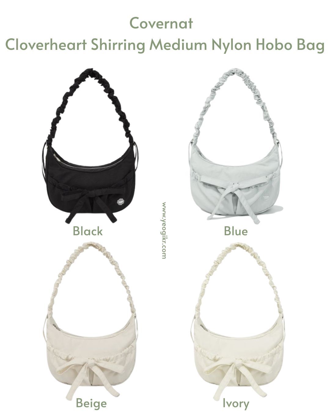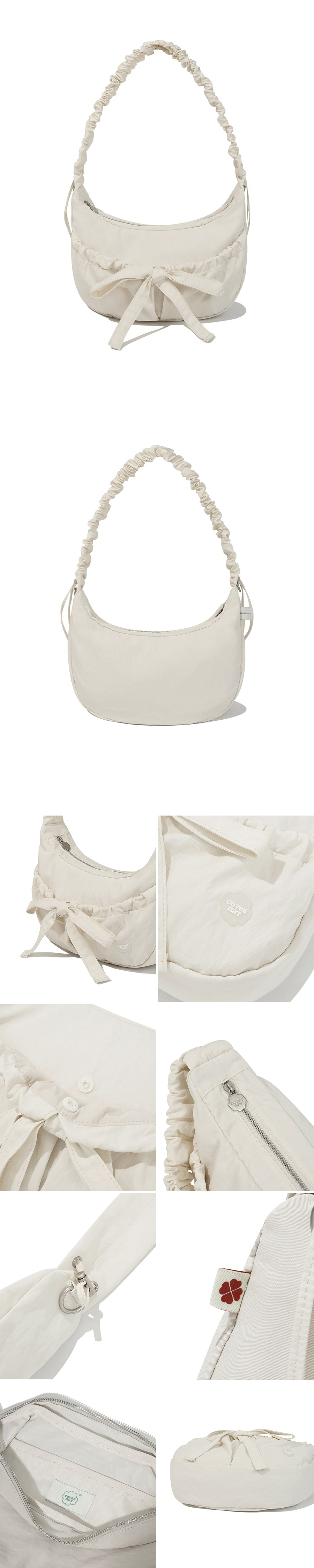 Covernat|Cloverheart Shirring Medium Nylon Hobo Bag [4 colors]