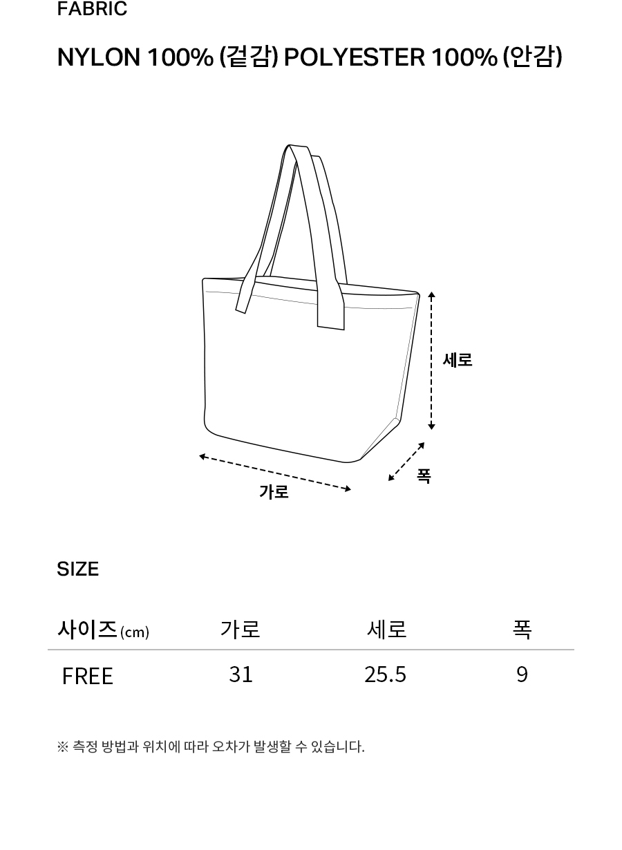 Material : [Exterior] Nylon 100% / [Lining] Polyester 100%
