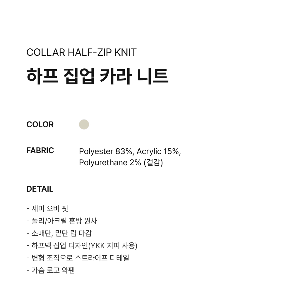 Material : [Exterior] Polyester 83% , Acrylic 15 , Polyurethane 2%