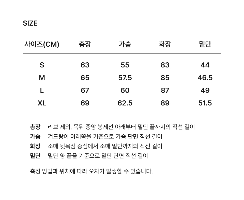 S:總長 63 / 胸寬 55 / 領口至袖口 83 (cm)