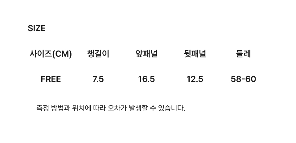 Free : 帽圍 58 / 帽高 16.5 / 帽簷 7.5 (cm)