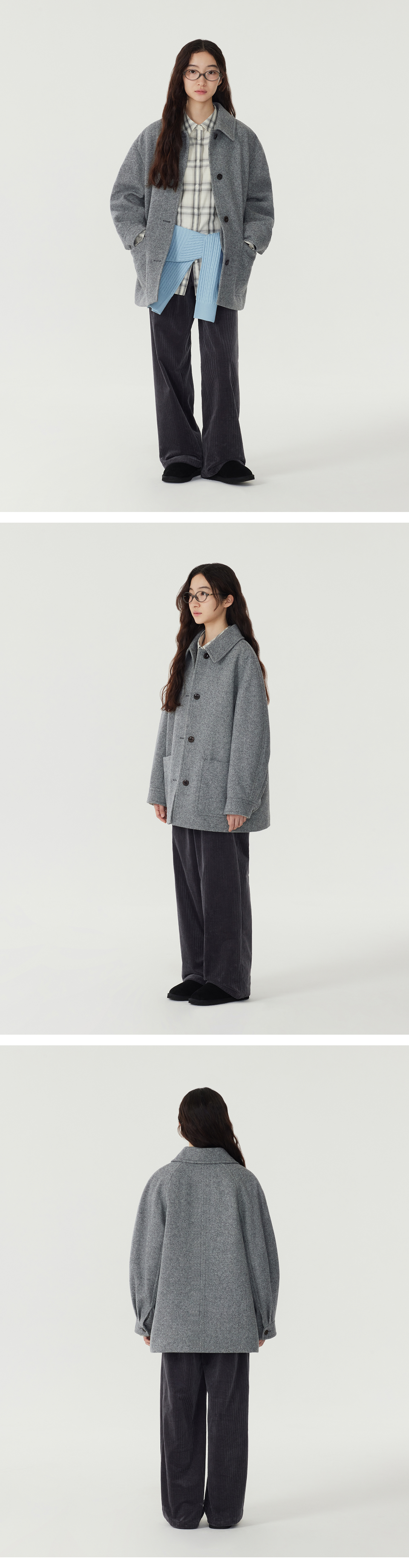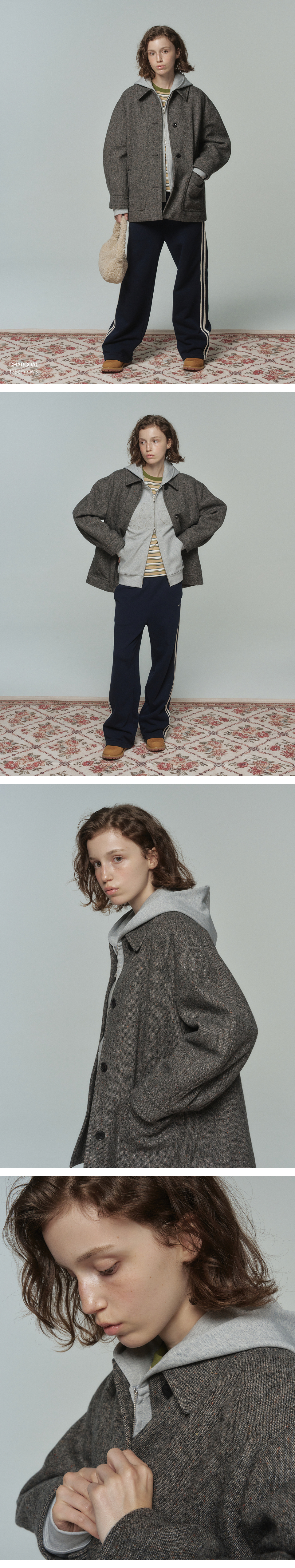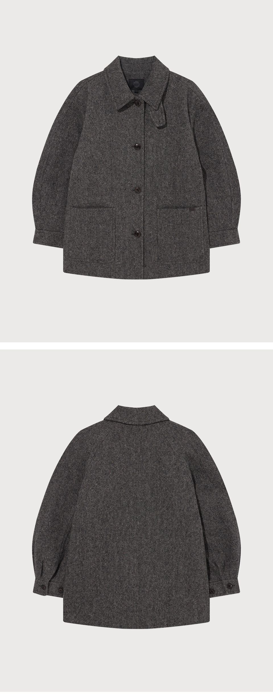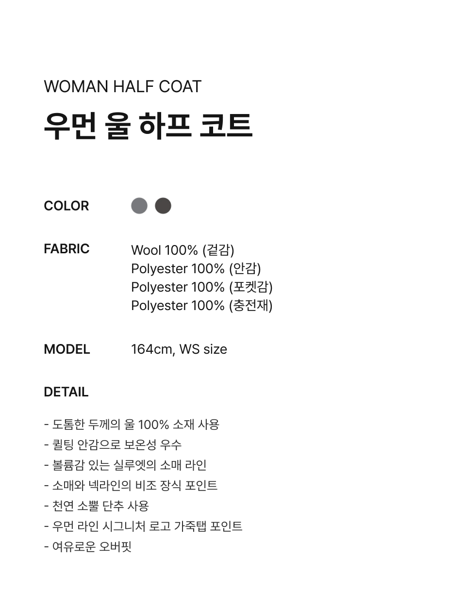 Material : [Exterior] Wool 100% / [Lining] Polyester 100% / [Pocketing] Polyester 100% / [Filling] Polyester 100%