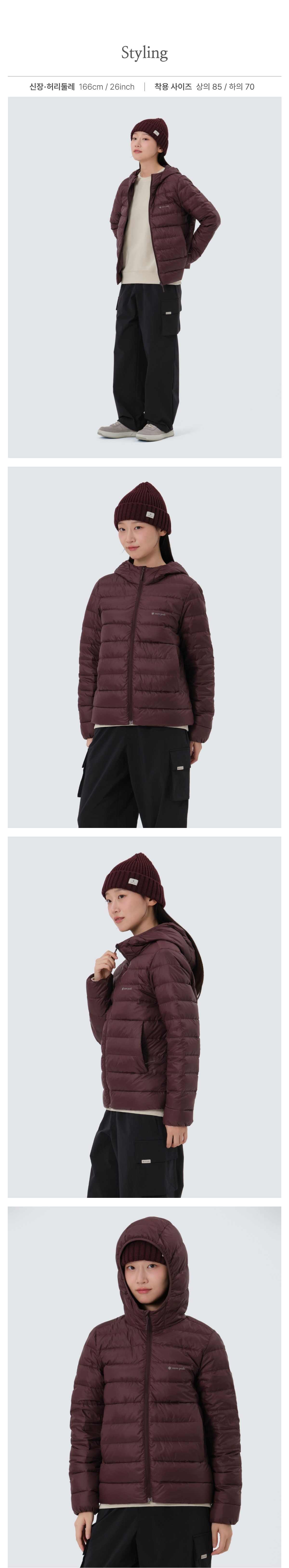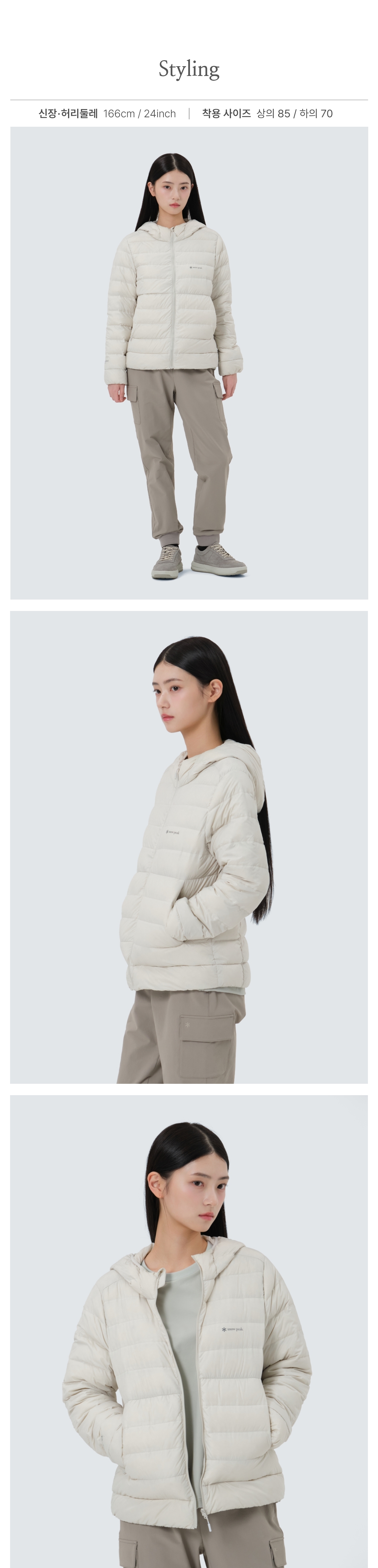 Material : [Exterior] Nylon 100% / [Lining] Nylon 100% / [Filling] Fluffy (Duck) 80% , Feather (Duck) 20% / [Pocketing] Nylon 100%