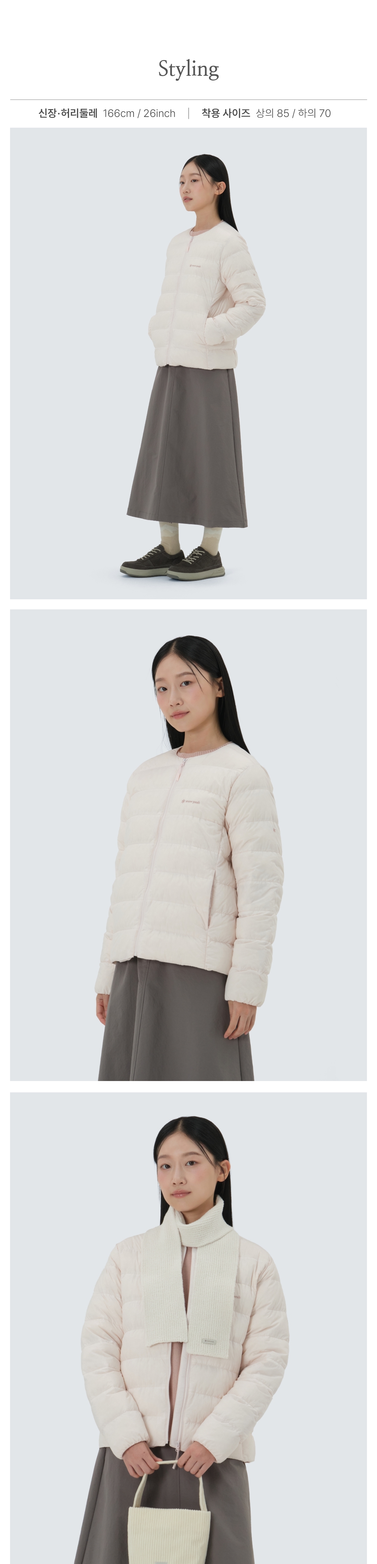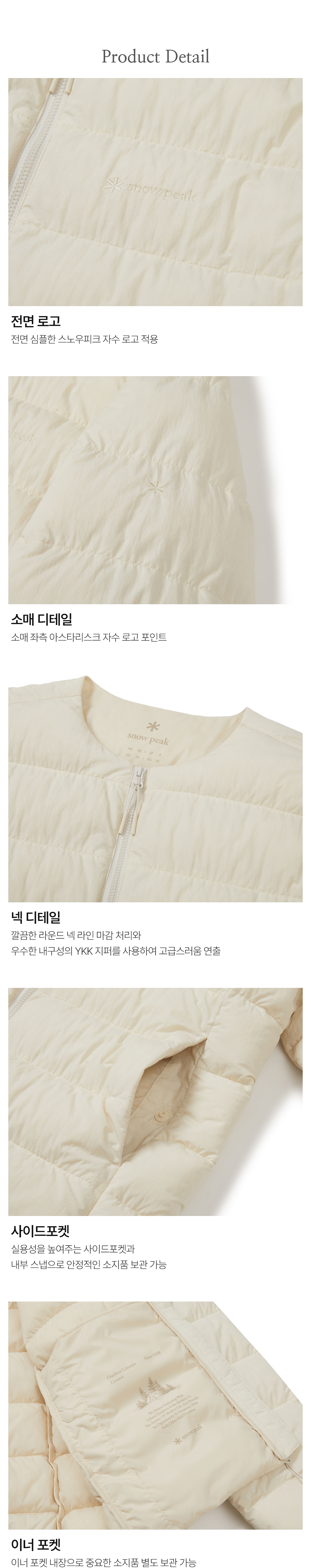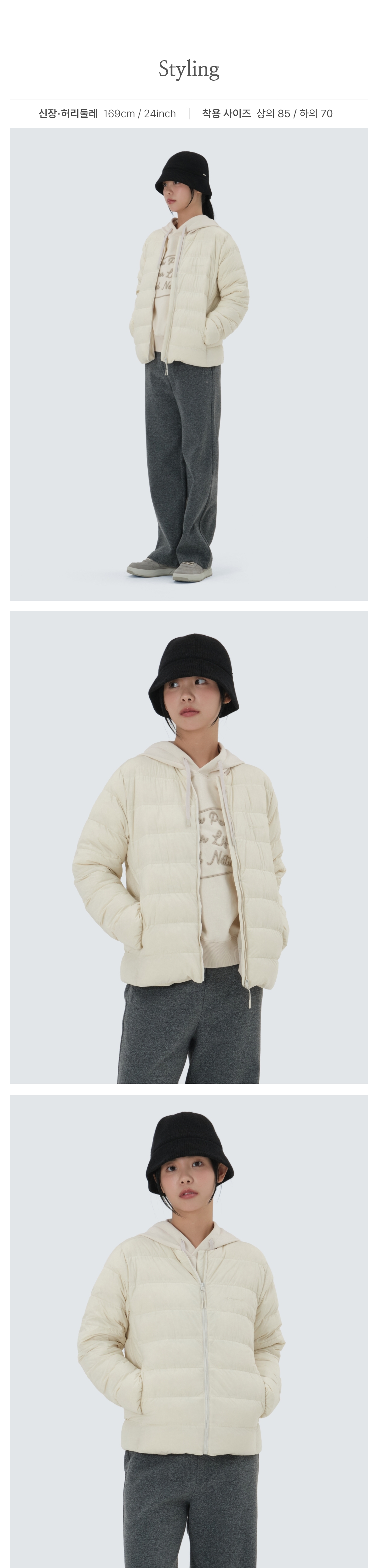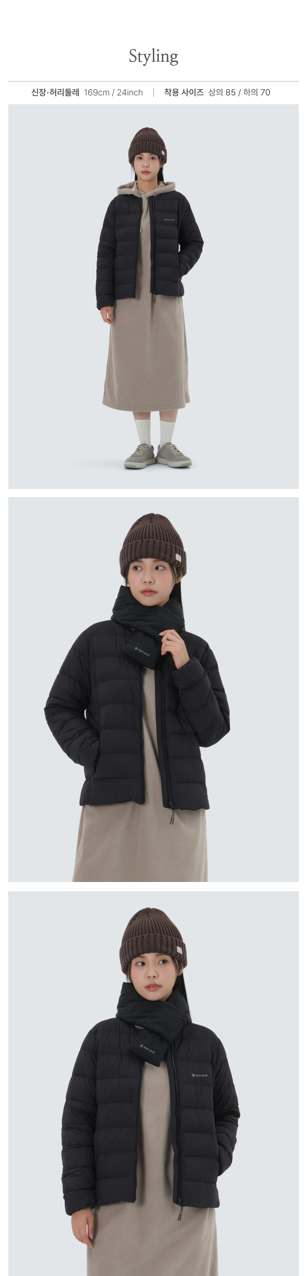 Material : [Exterior] Nylon 100% / [Lining] Nylon 100% / [Filling] Fluffy (Duck) 80% , Feather (Duck) 20% / [Pocketing] Polyester 100%