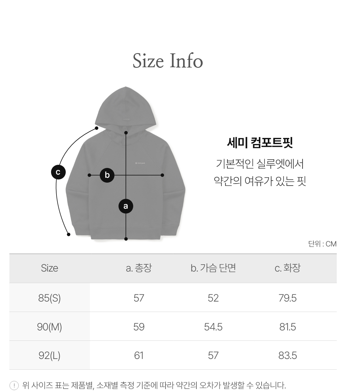 85(S):總長 57 / 胸寬 52 / 領口至袖口 79.5 (cm)