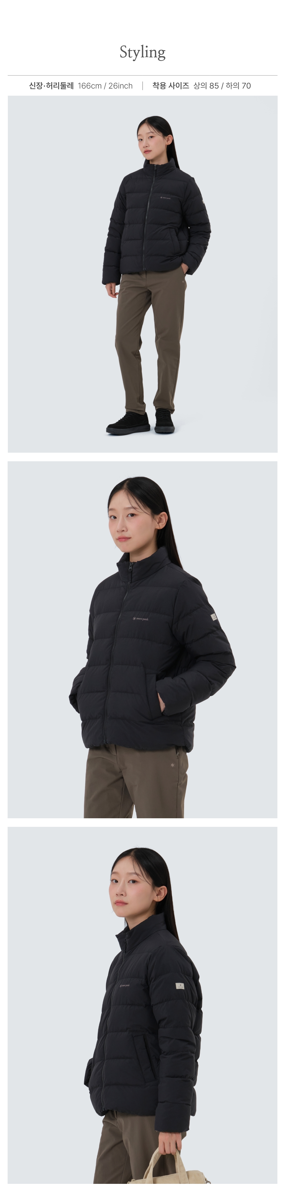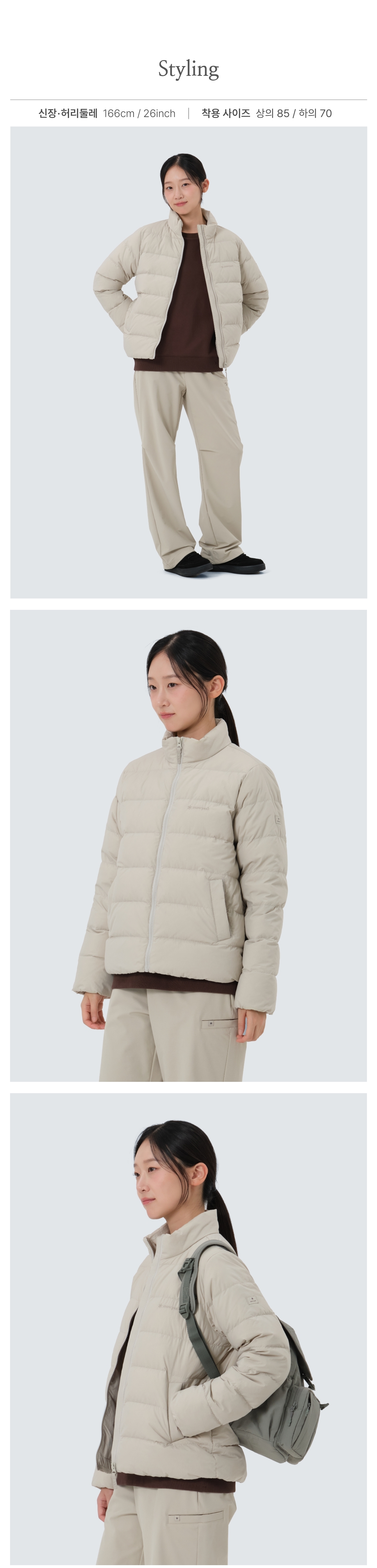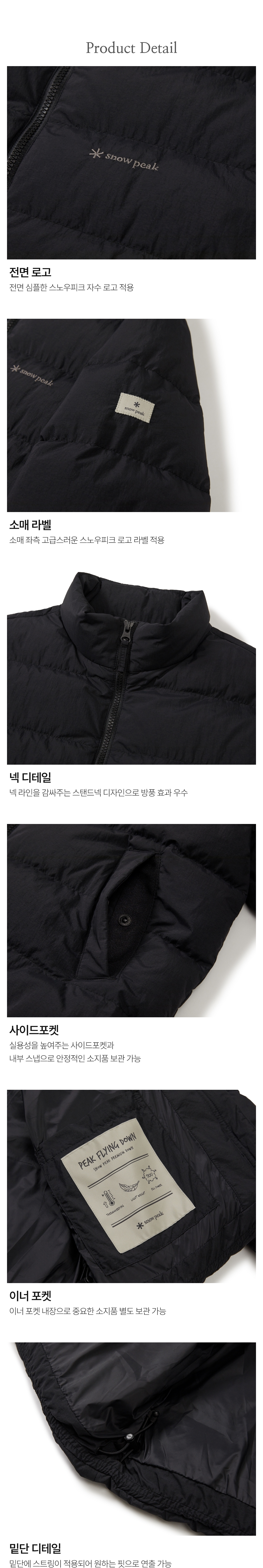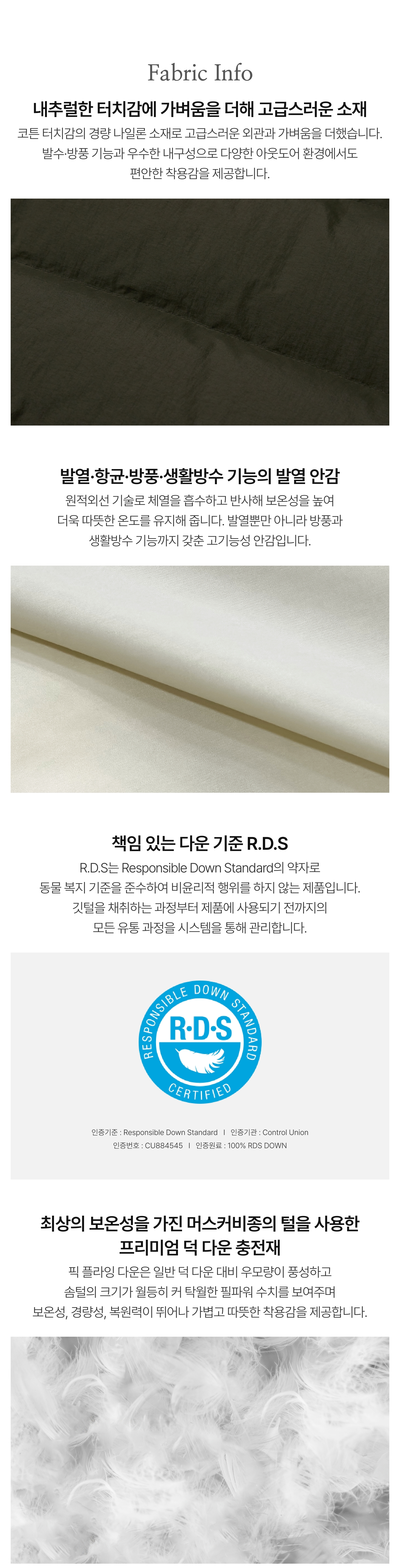 Material : [Exterior] Nylon 100% / [Lining] Nylon 100% / [Filling] Fluffy (Duck) 80% , Feather (Duck) 20% / [Charging Bag] Polyester 100% / [Pocketing] Polyester 100%