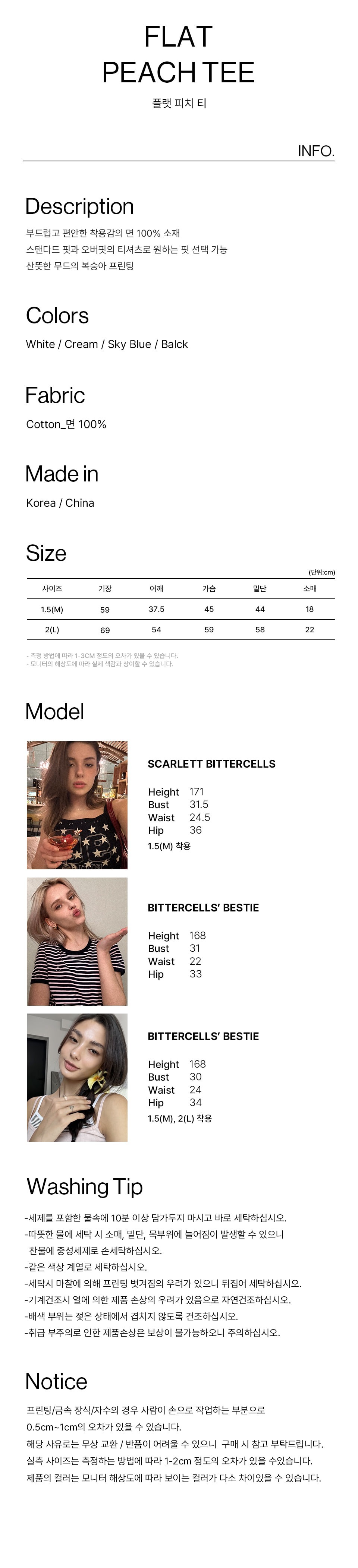 1.5 (Standard Fit): 總長 59 / 肩寬 37.5 / 胸寬 45 / 袖長 18 (cm)