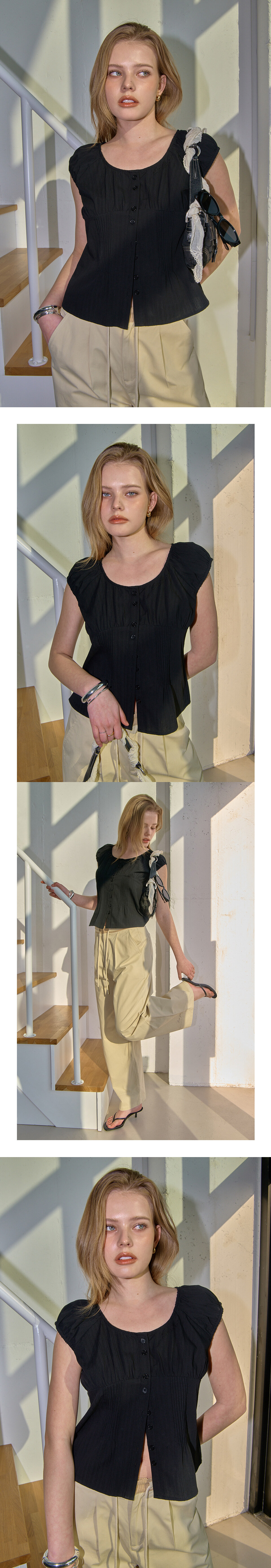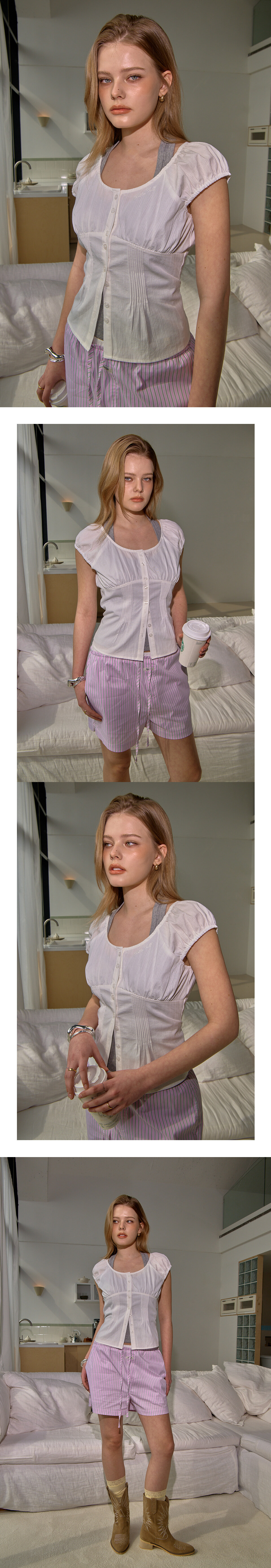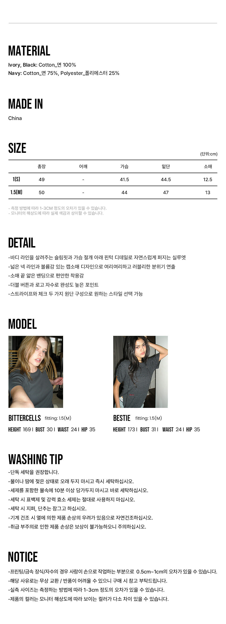 1[S] - 總長 49 / 胸寬 41.5 / 下擺 44.5 / 袖長 12.5 (cm)
