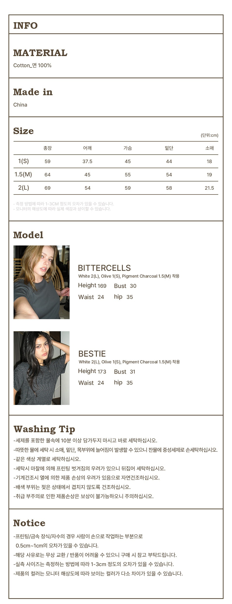 1 (S): 總長 59  / 肩寬 37.5 / 胸寬 45 / 袖長 18 (cm)