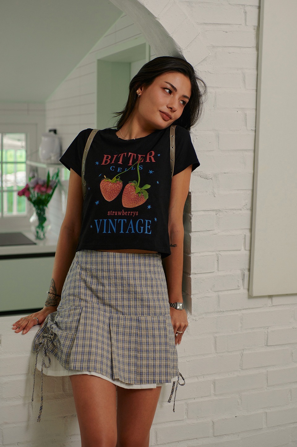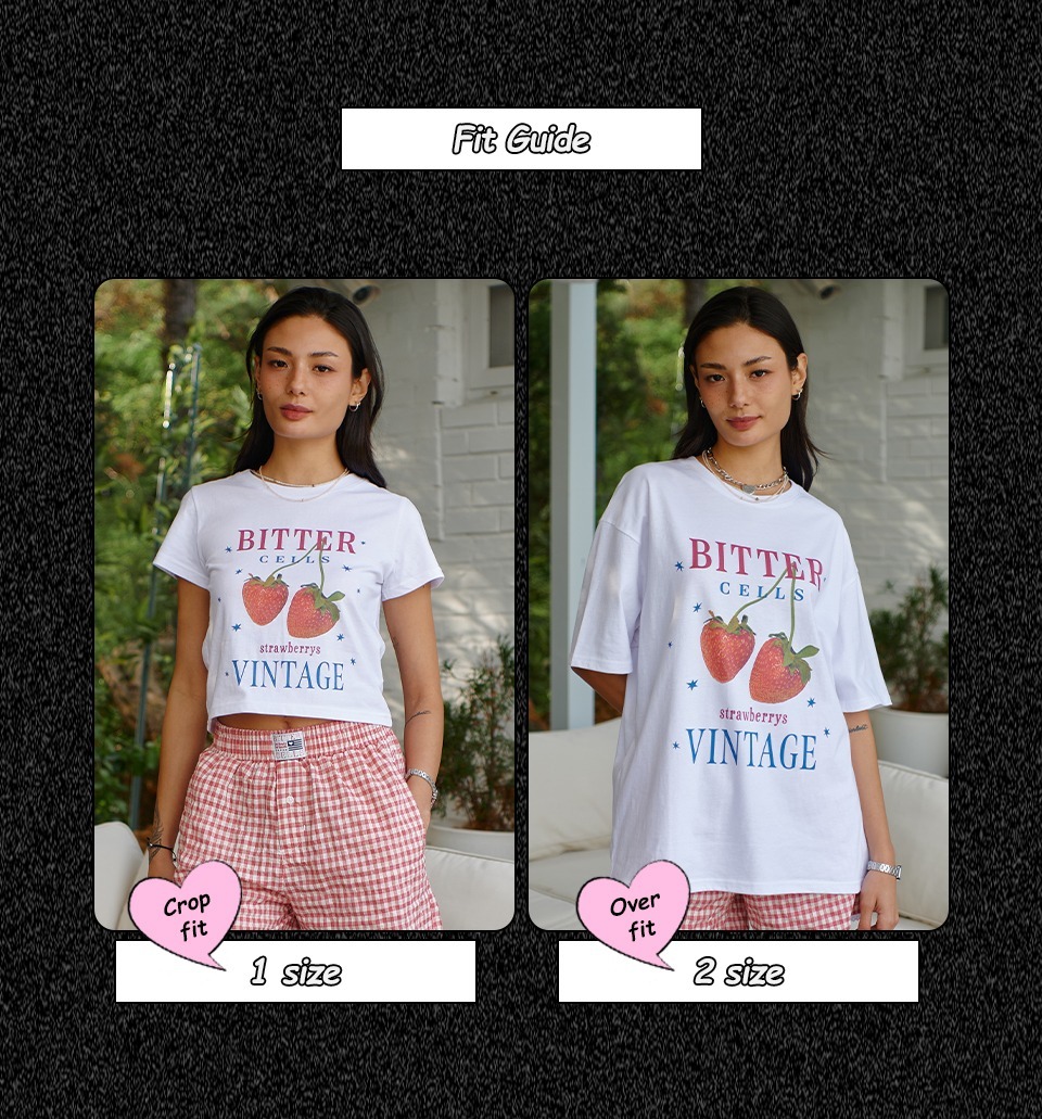 1 (Crop Fit): 總長 46 / 肩寬 34.5 / 胸寬 42 / 袖長 15 (cm)