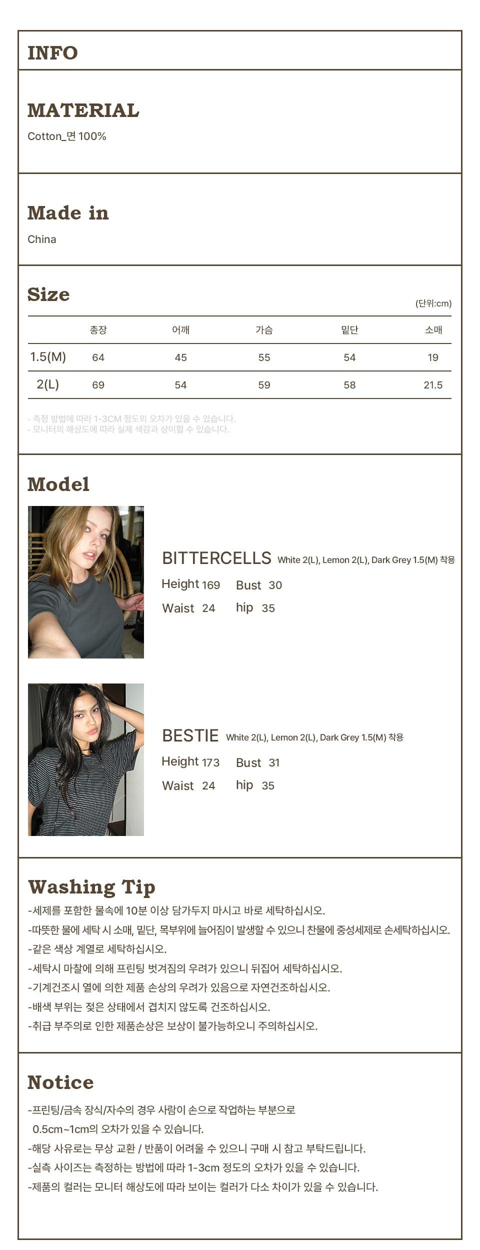 2 (L): 總長 69 / 肩寬 54 / 胸寬 59 / 袖長 21.5 (cm)
