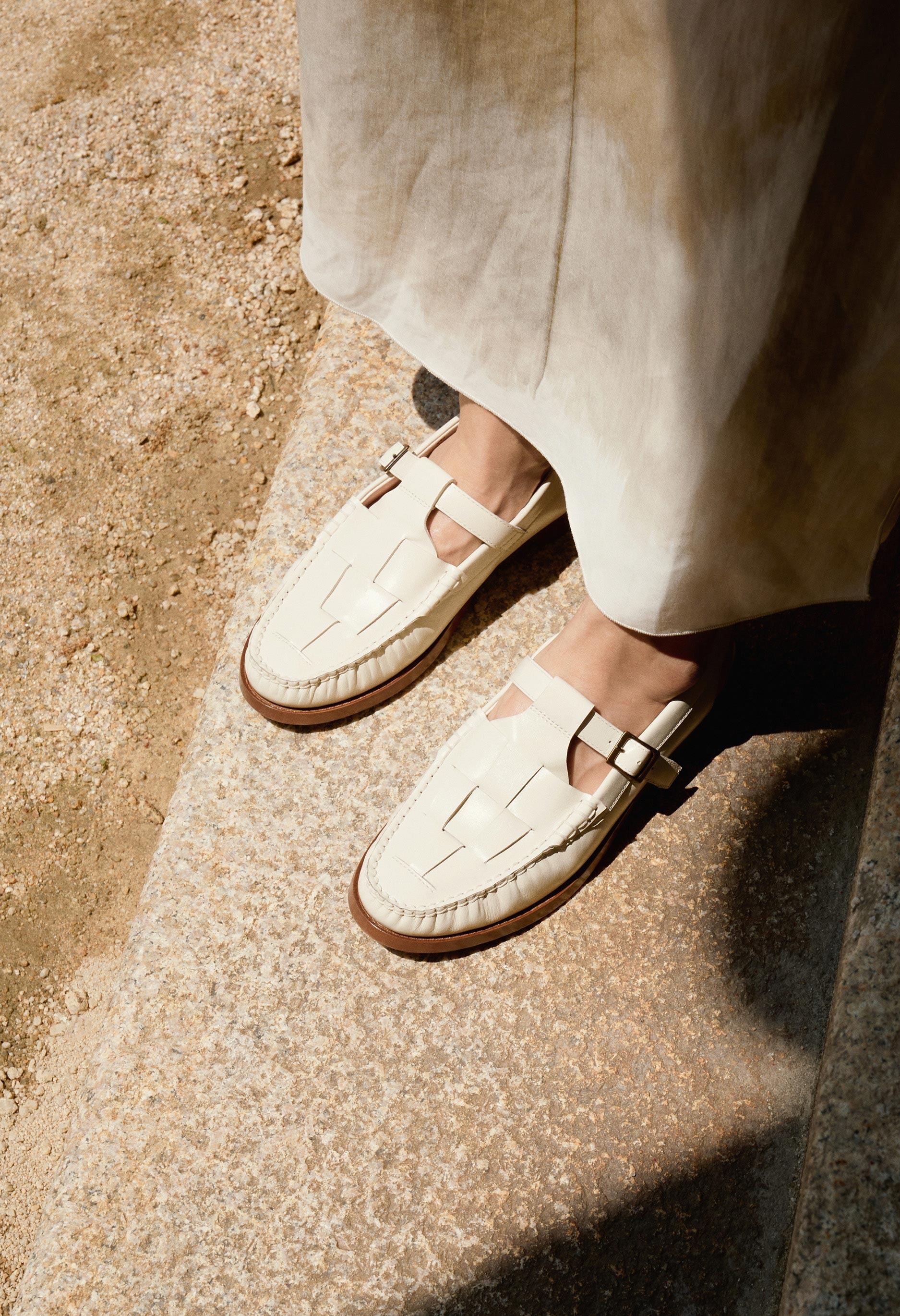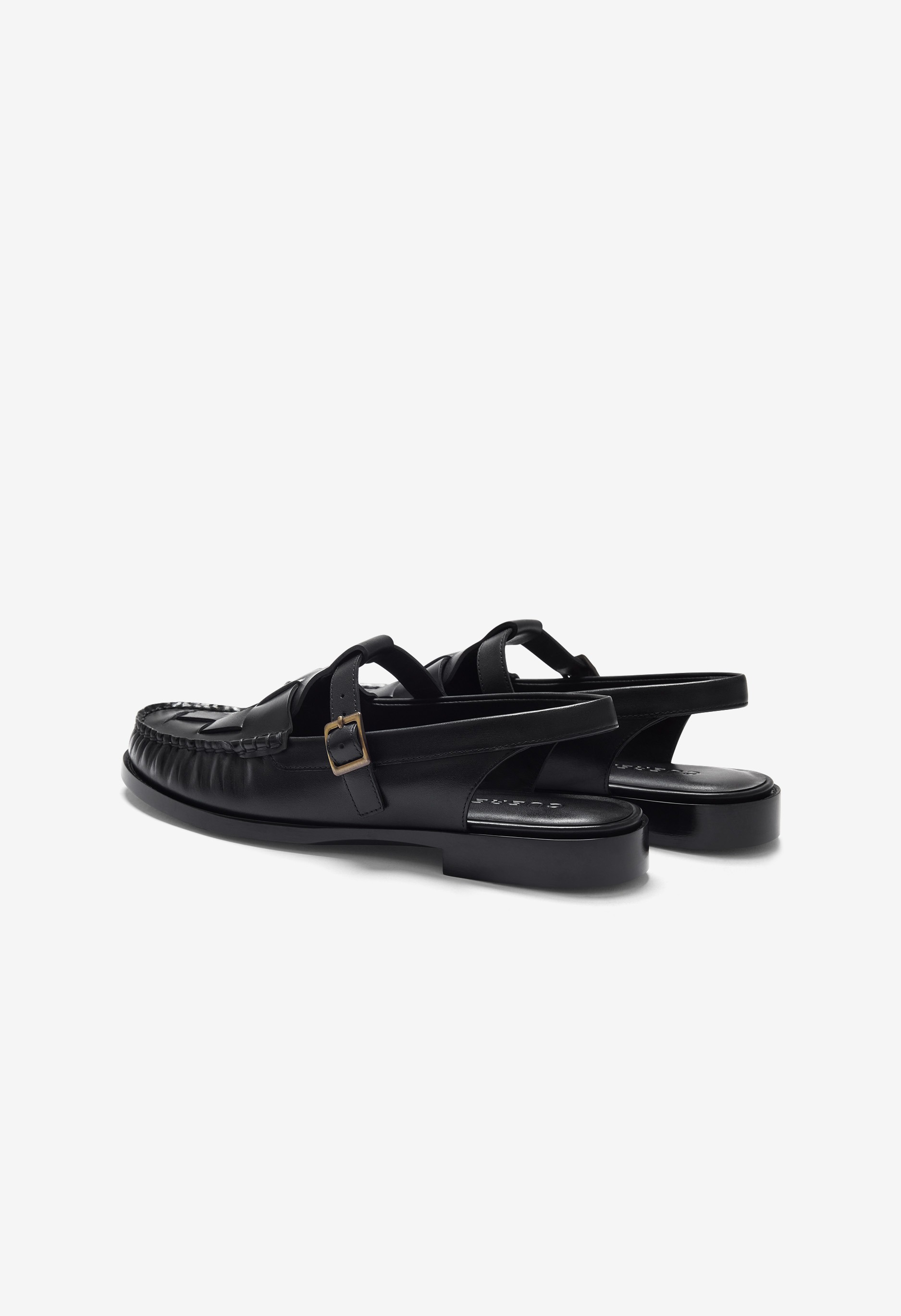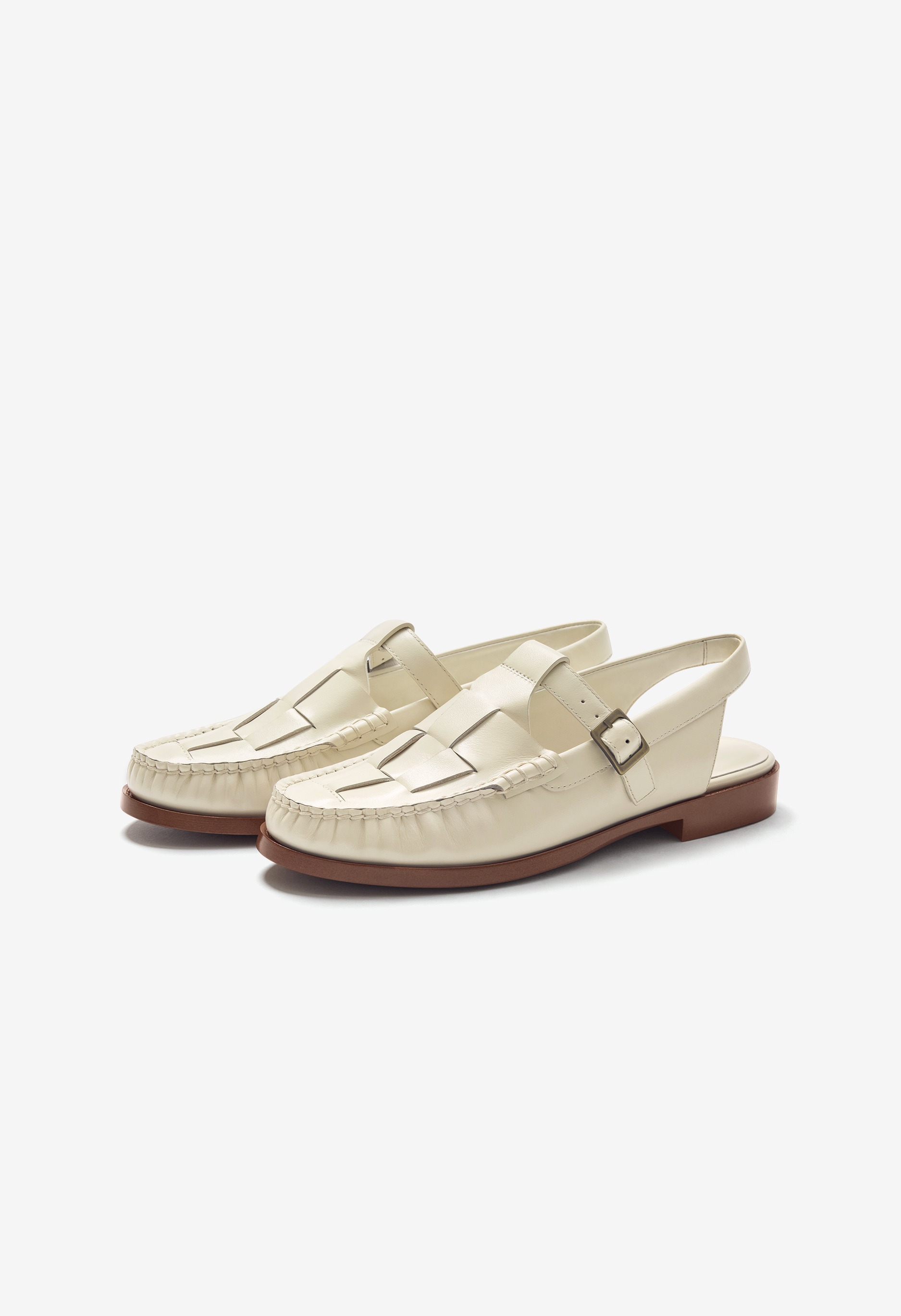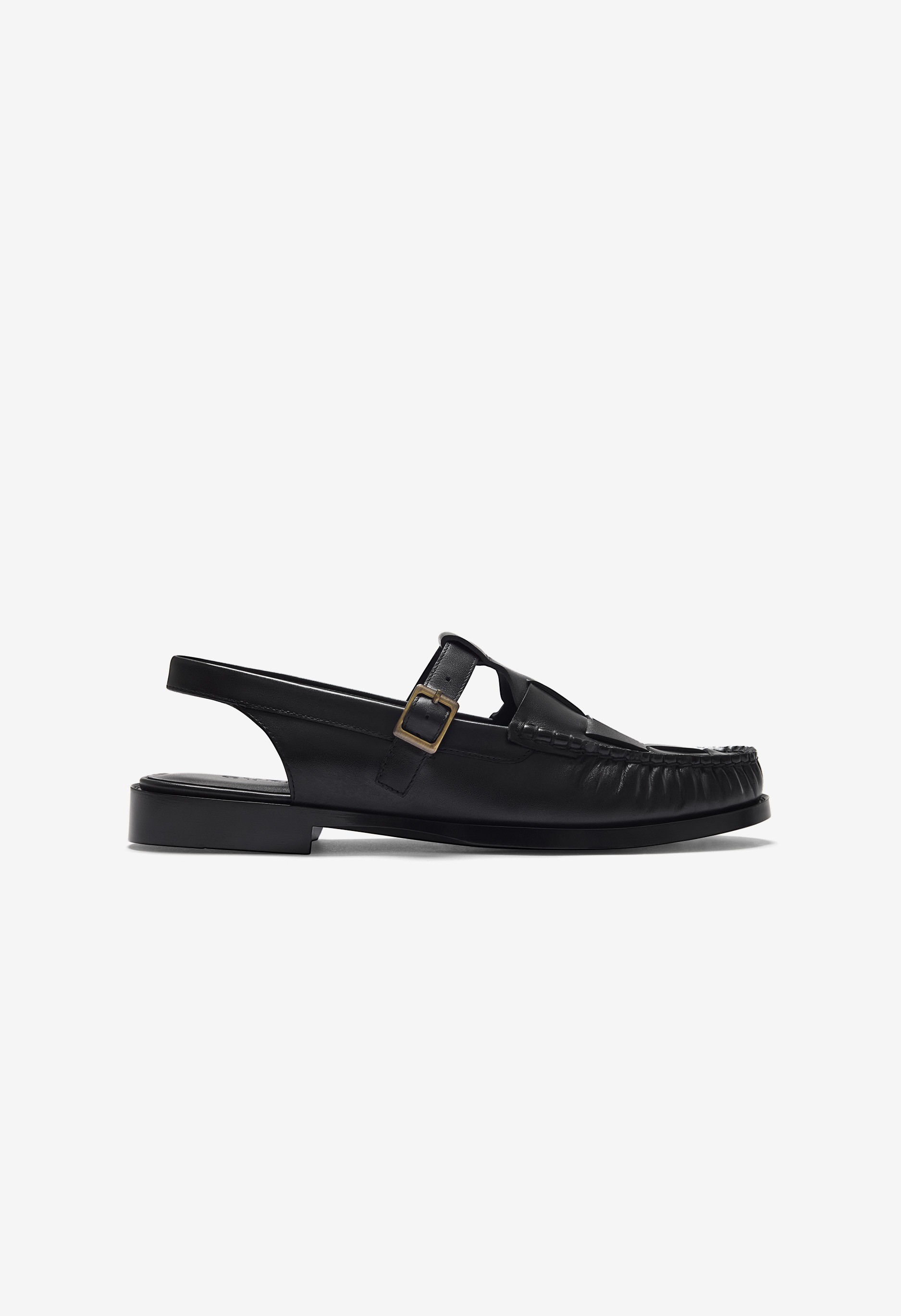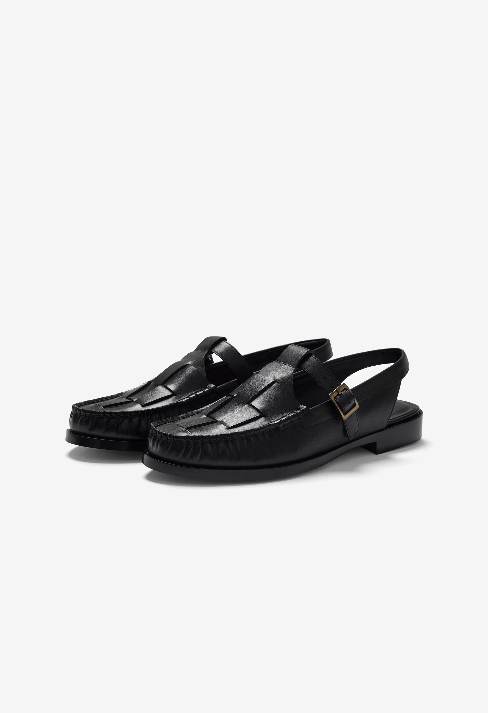 T 字帶露跟樂福鞋,飾有編織細節。精細的皮革編織和休閒的露跟帶設計,打造舒適而精緻的造型。採用布雷克製程打造的模壓外底,輕盈穩固,經久耐用。