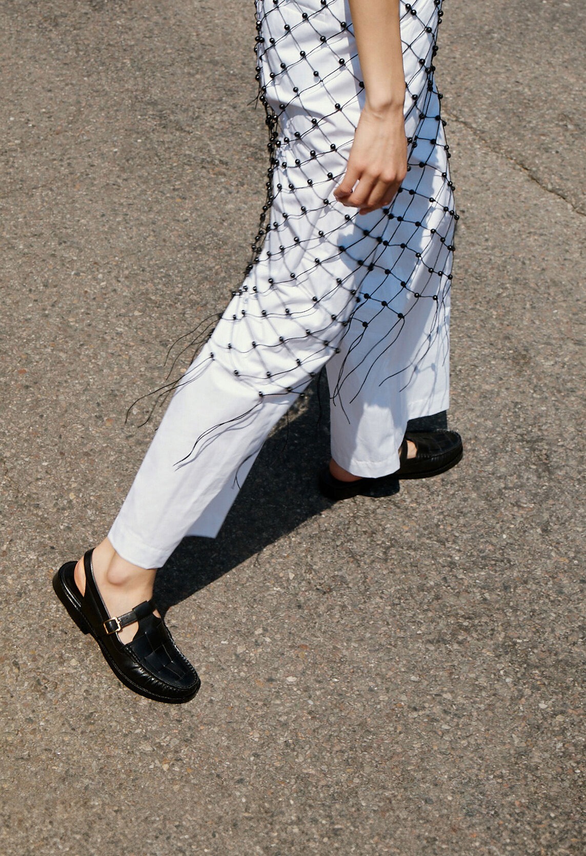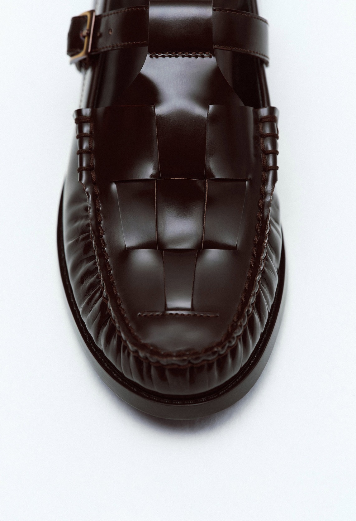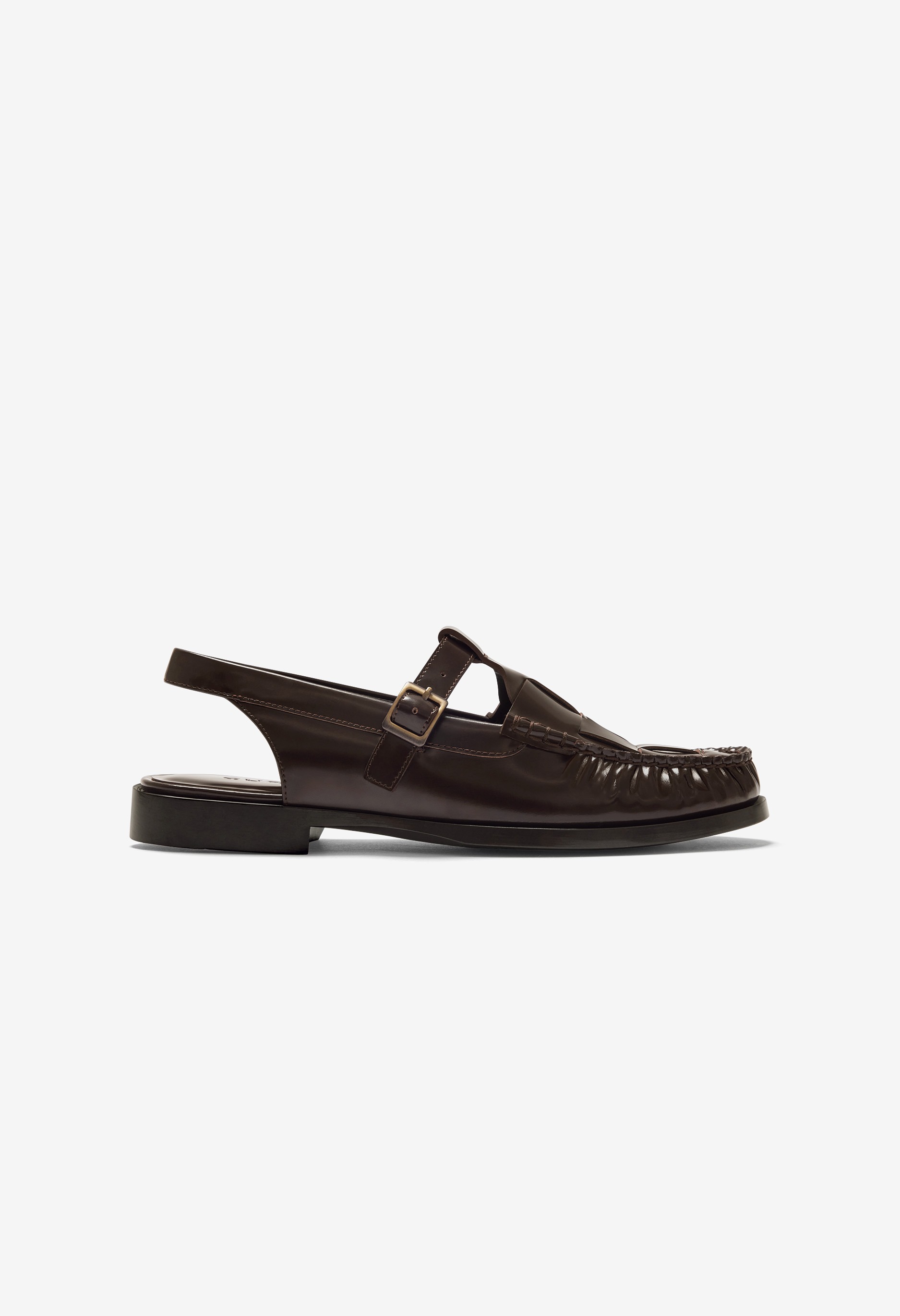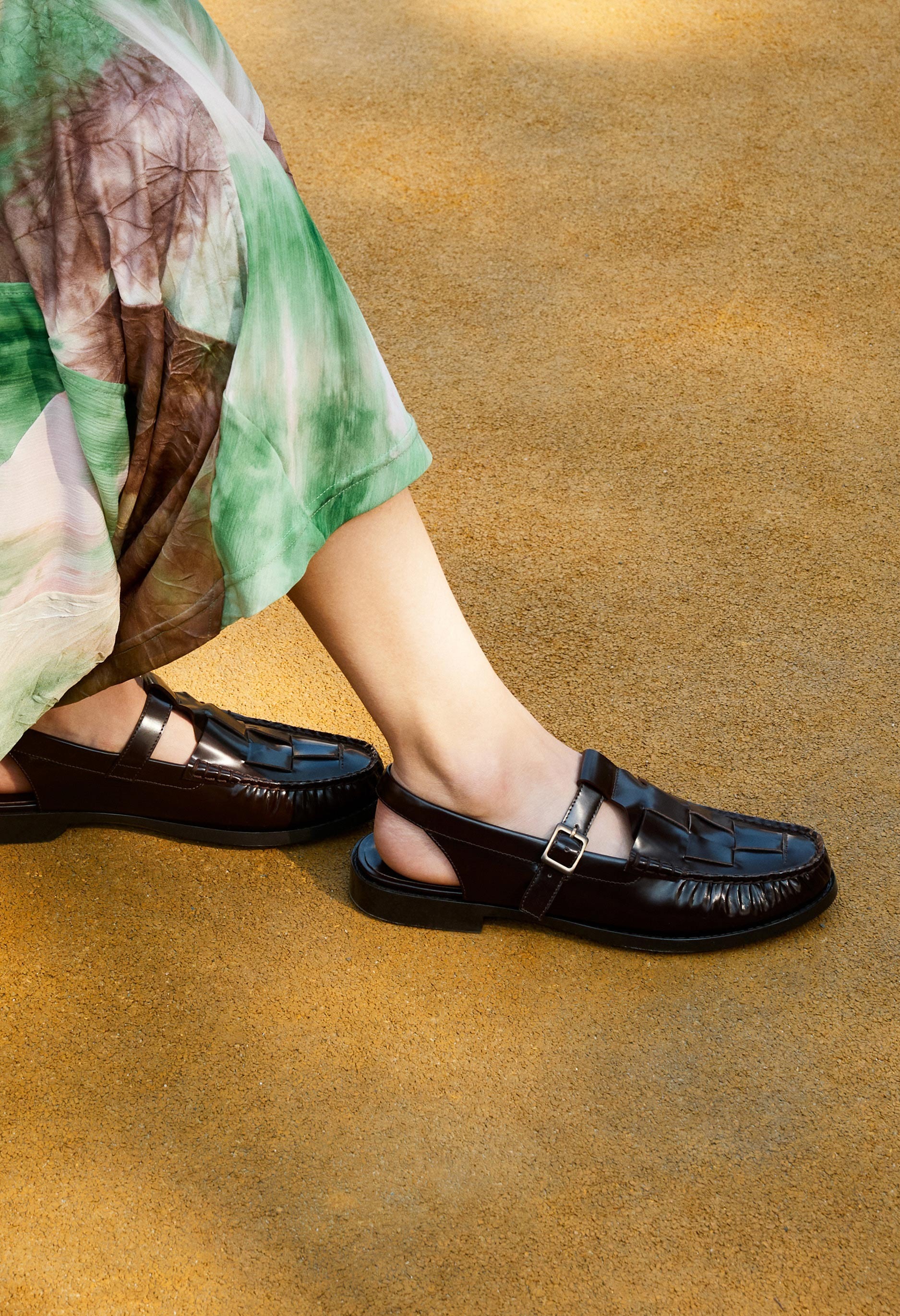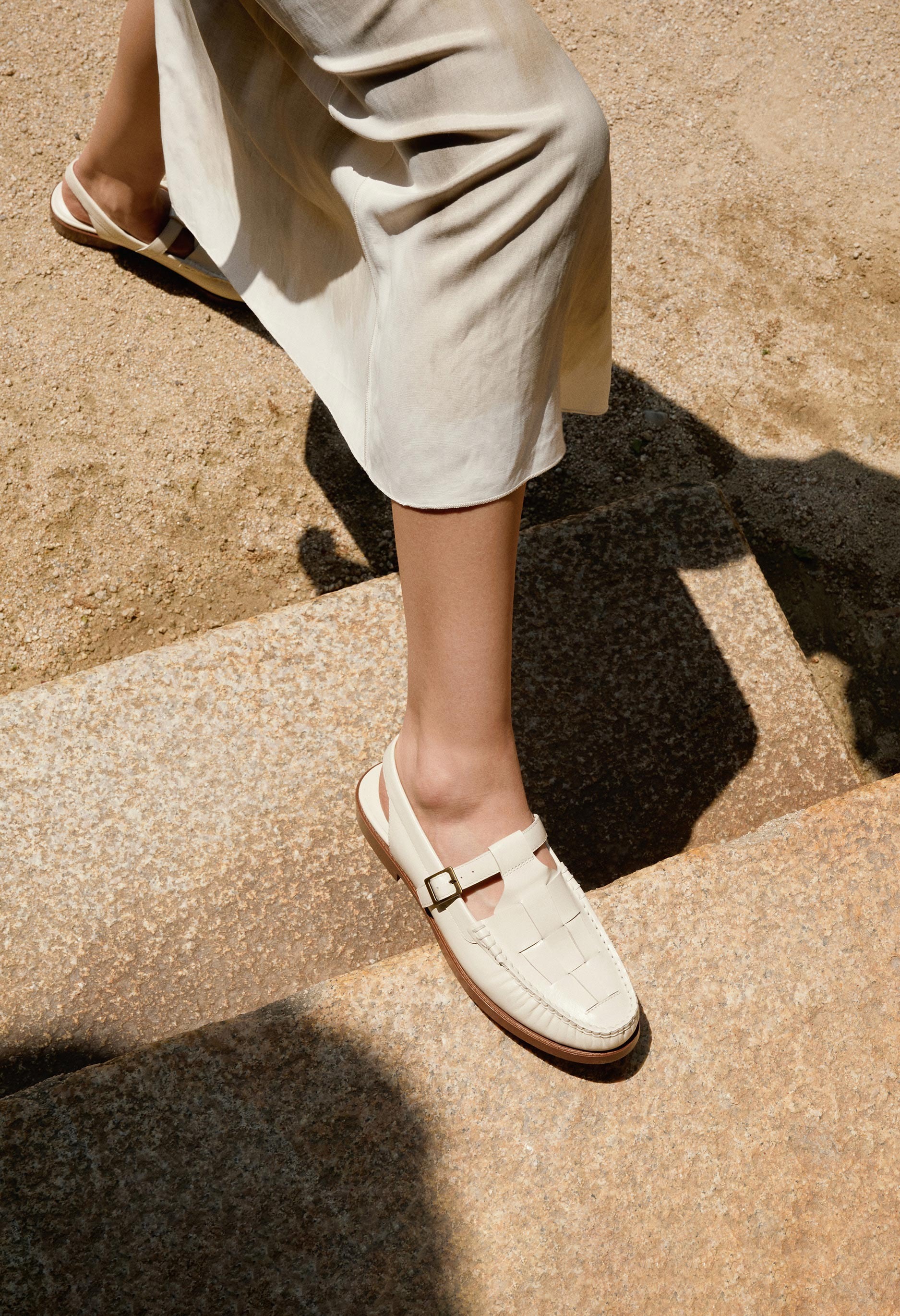 T 字帶露跟樂福鞋,飾有編織細節。精細的皮革編織和休閒的露跟帶設計,打造舒適而精緻的造型。採用布雷克製程打造的模壓外底,輕盈穩固,經久耐用。