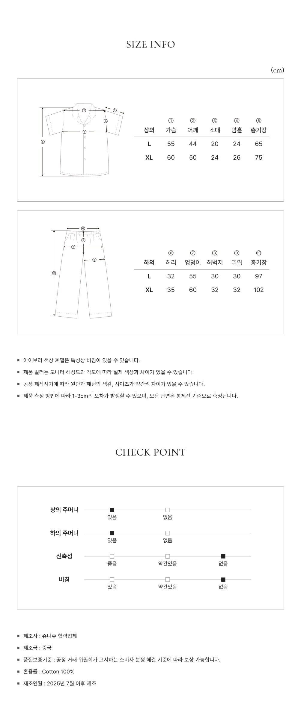 L (上衣): 總長 65 / 肩寬 44 / 胸寬 55 / 袖長 20 (cm)