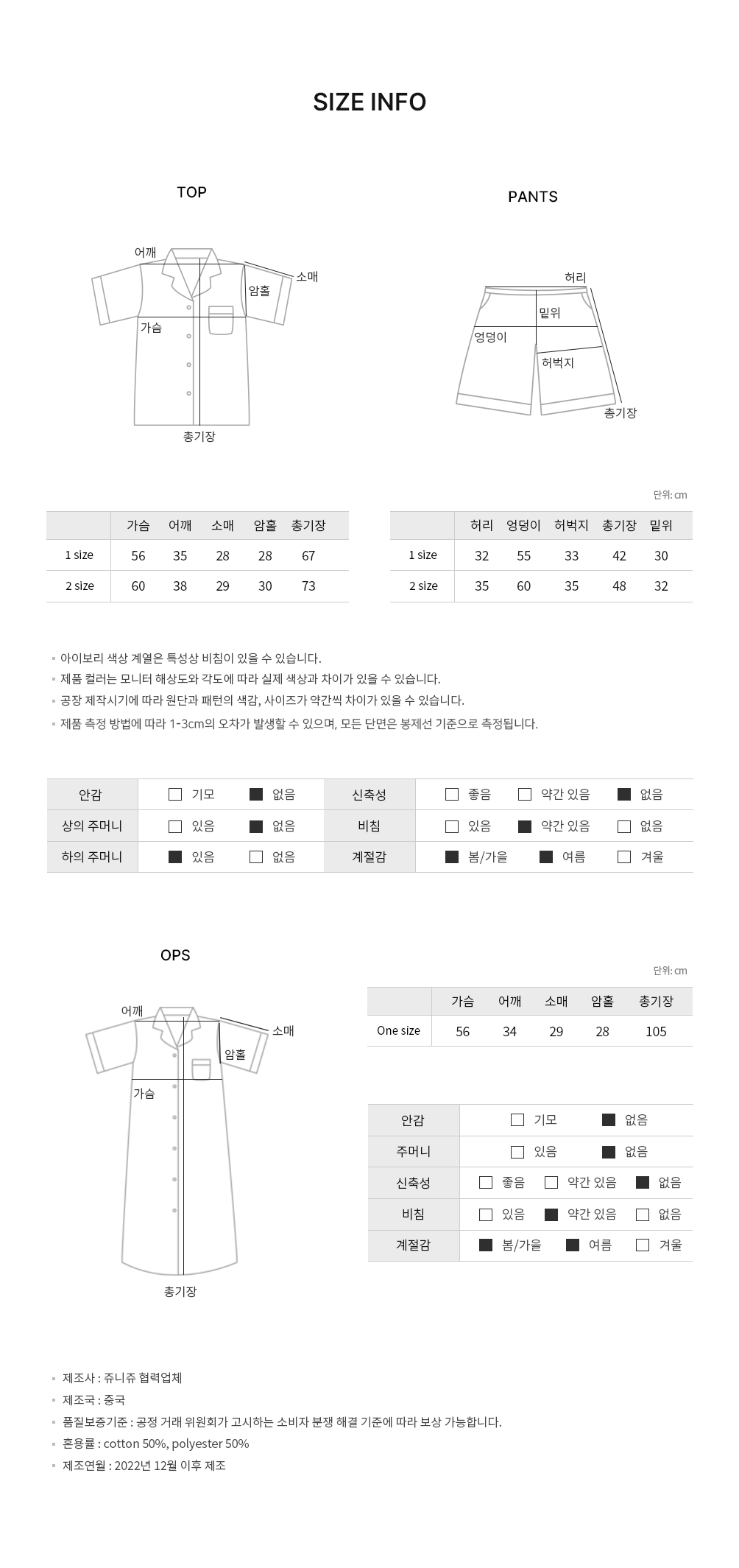 Ops : 總長 105 / 肩寬 34 / 胸寬 56 / 袖長 29 (cm)
