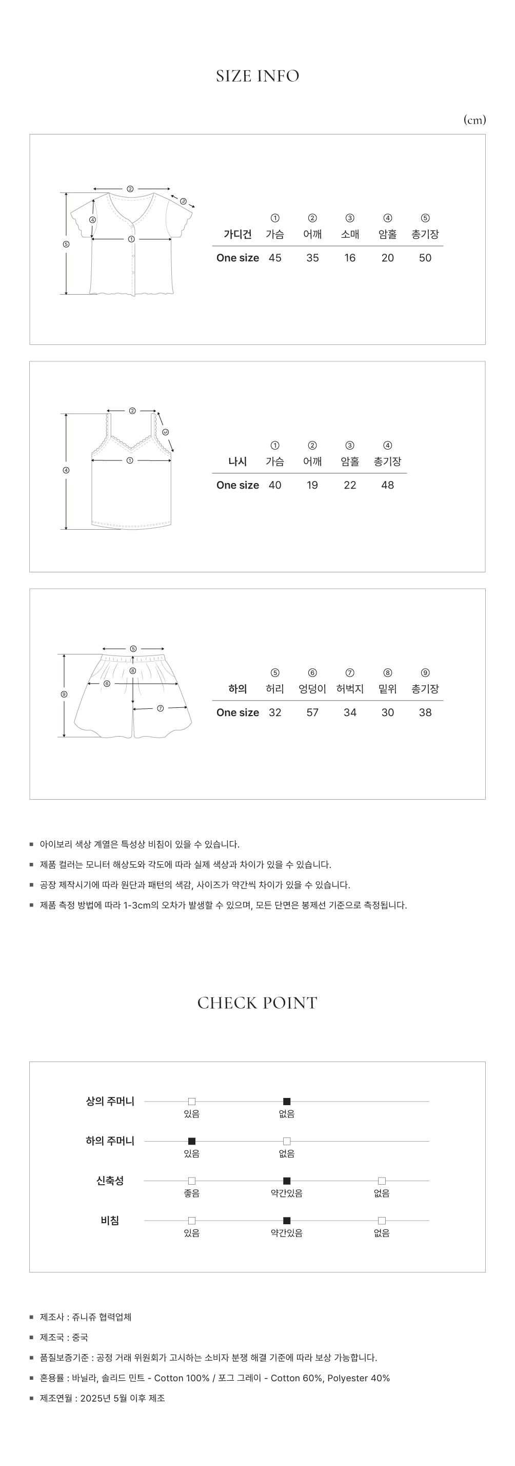 上衣: 總長 50 / 肩寬 35 / 胸寬 45 / 袖長 16 (cm)