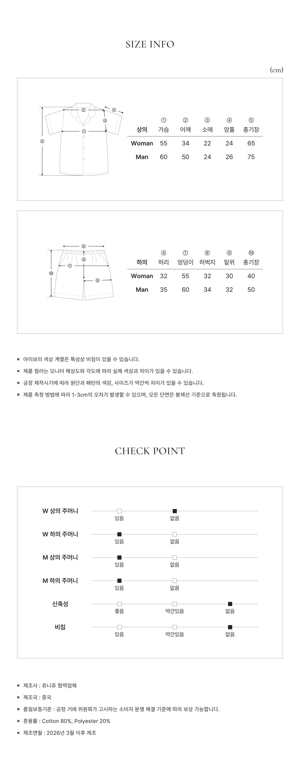 Woman (上衣): 總長 65 / 肩寬 34 / 胸寬 55 / 袖長 22 (cm)