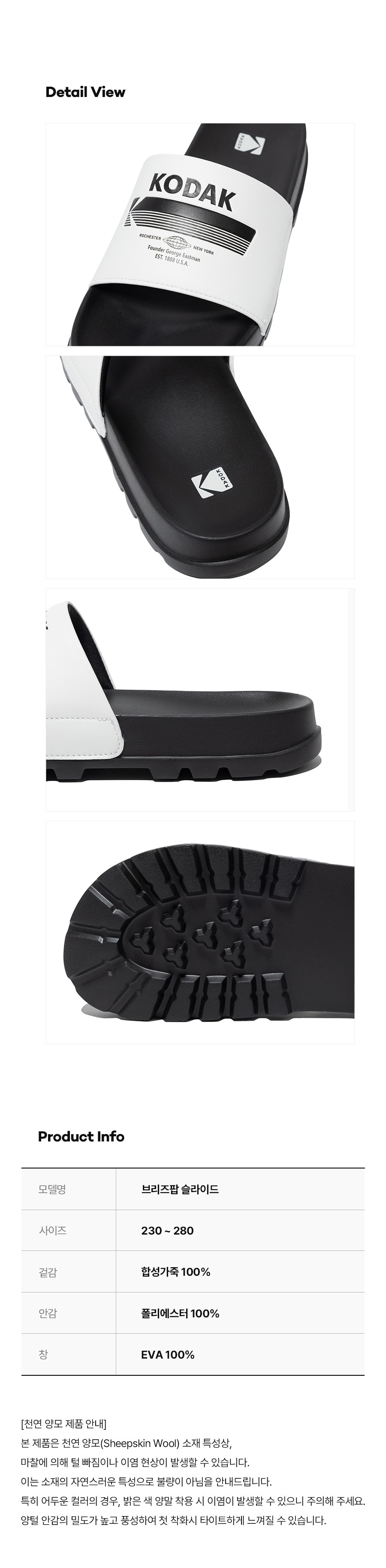 Material : [Exterior] Synthetic Leather 100% / [Lining] Polyester 100% / [Soles] EVA