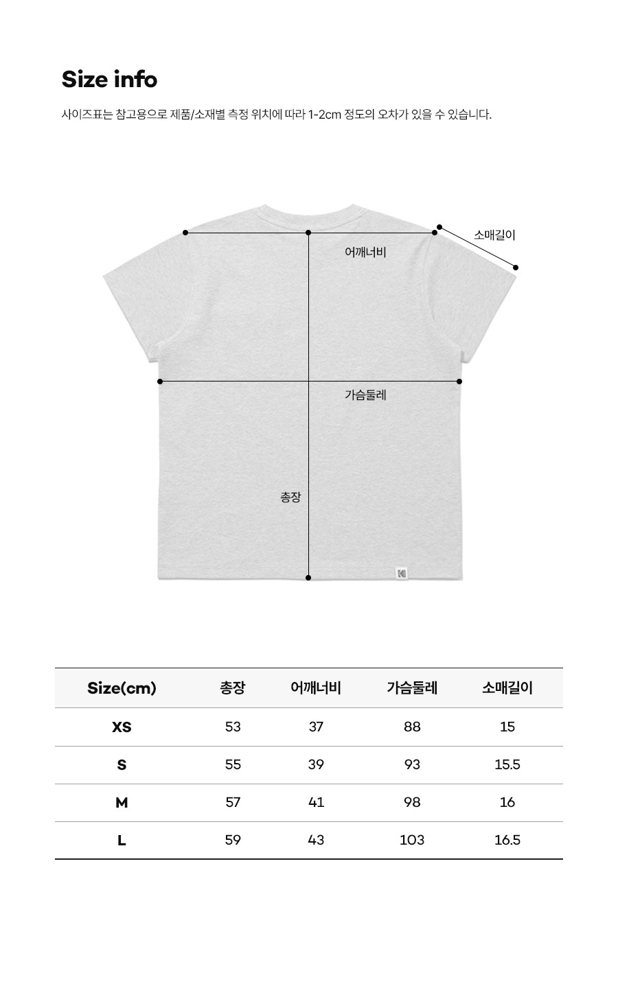 XS(85): 總長 53 / 肩寬 37 / 胸圍 88 / 袖長 15 (cm)