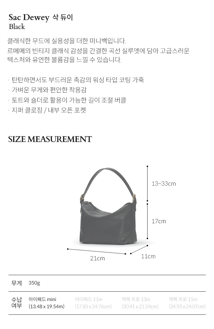 Size : 21  x 11 x 17 (cm) / Shoulder Strap: 13-33 (cm)