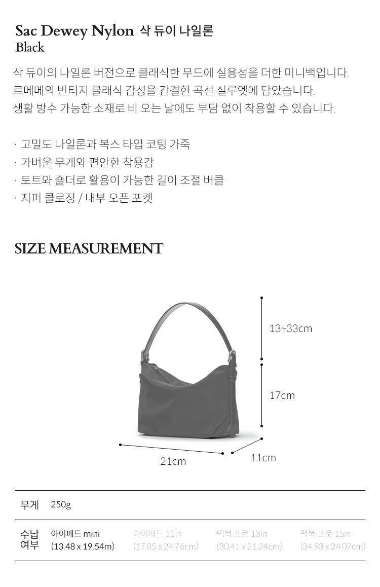 Size : 21 x 11 x 17 (cm) / Shoulder Strap: 13-33 (cm)