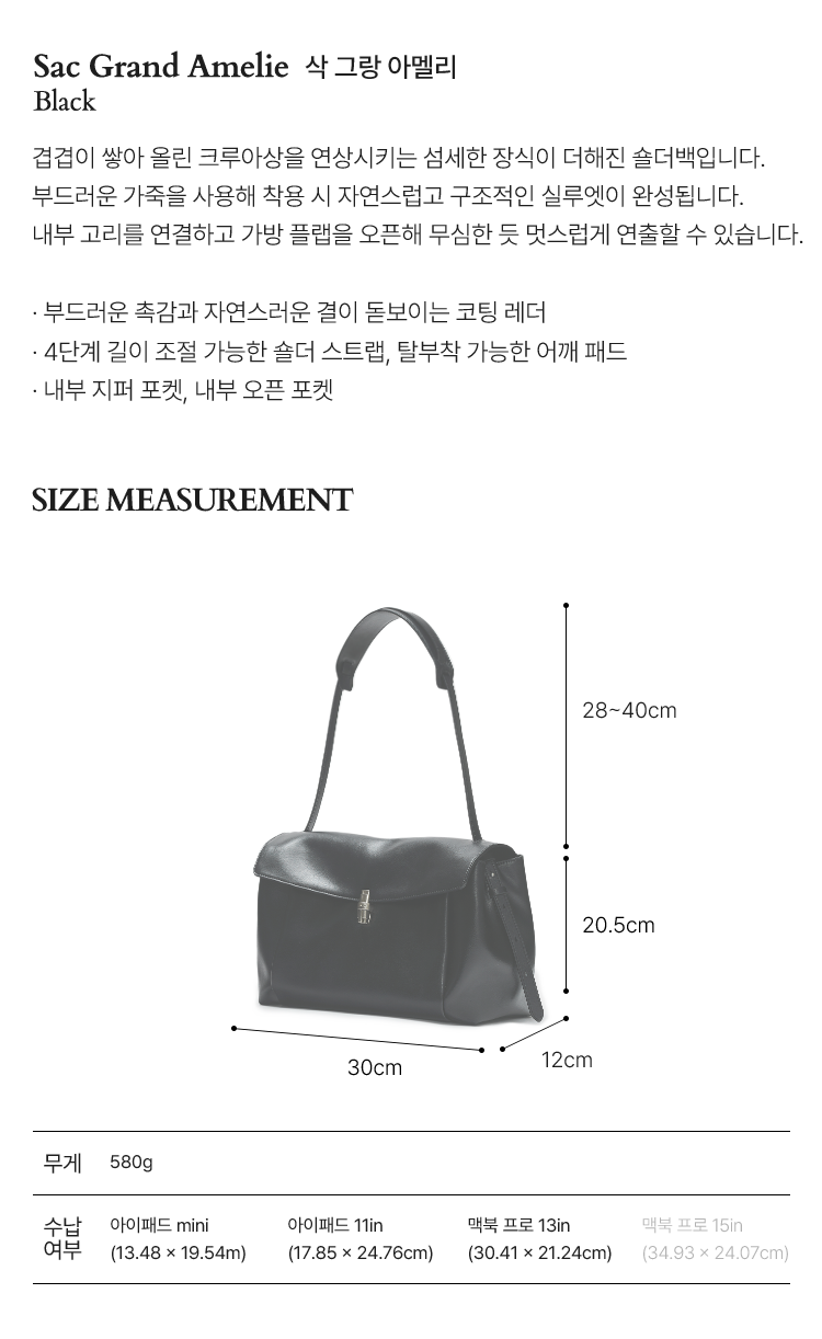 Size : 30 (W) X 20.5 (H) X 12 (D) cm ; LONG SHOULDER DROP 28-40cm
