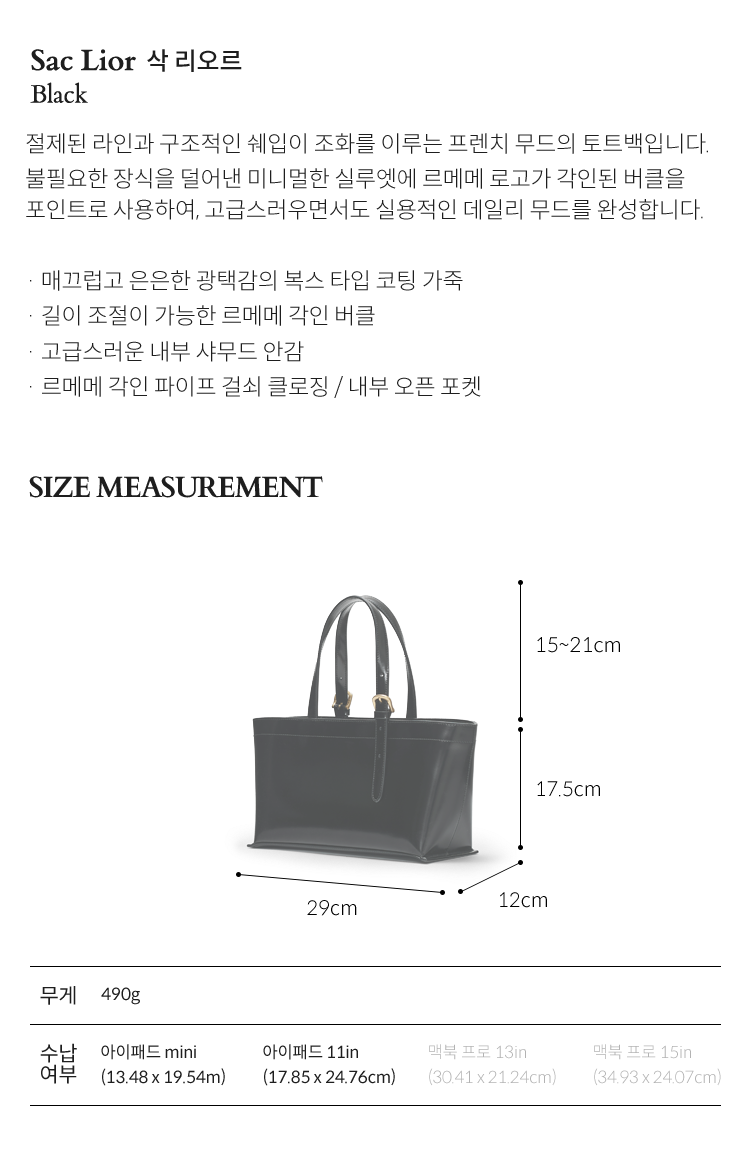 Size : 29 x 12 x 17.5 (cm) / Shoulder Strap: 15-21 (cm)