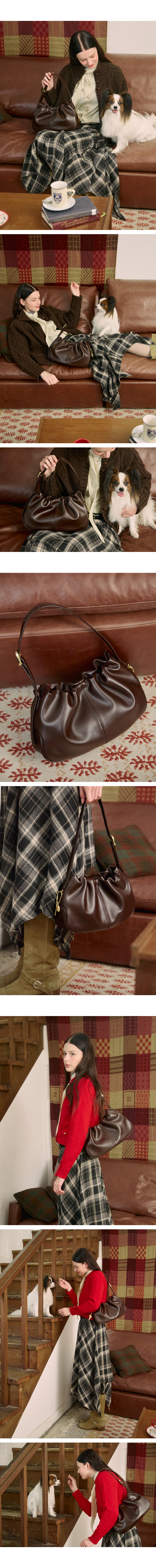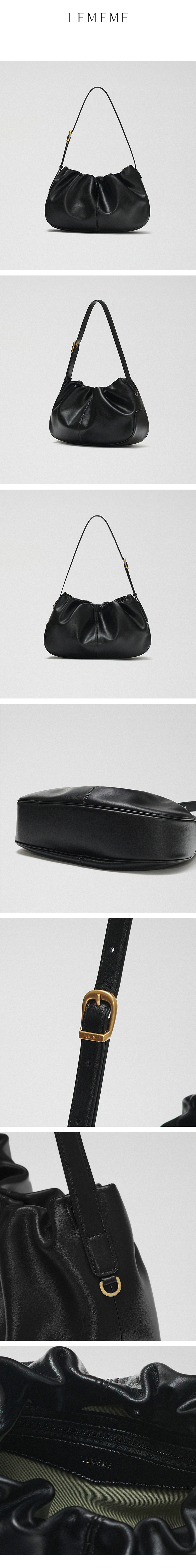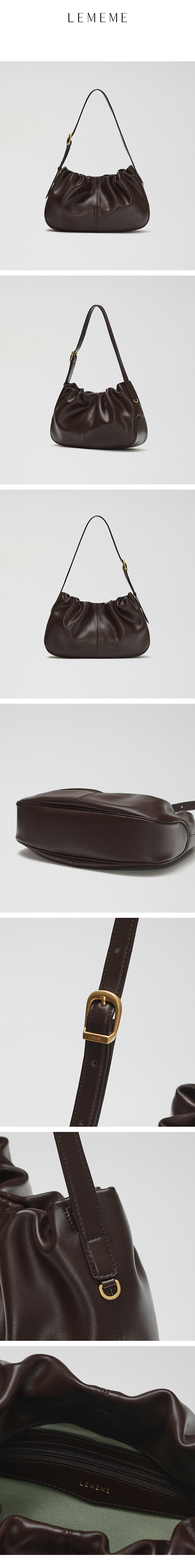 使用柔軟皮革,根據物品的數量和揹帶長度自然定型,打造感性輪廓。