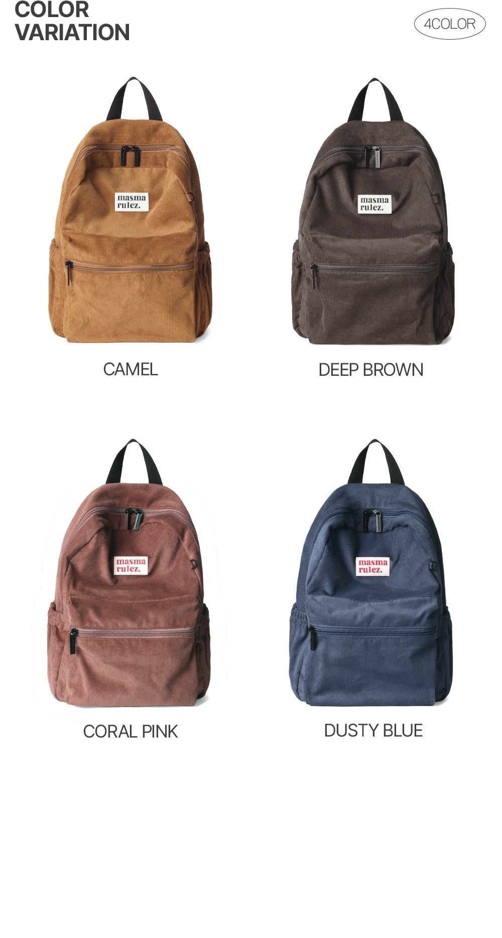 Corduroy Camel / Corduroy Coral Pink / Corduroy Deep Brown / Corduroy Dusty Blue - [Out] Cotton 100% / [Inner] Polyester 100%;