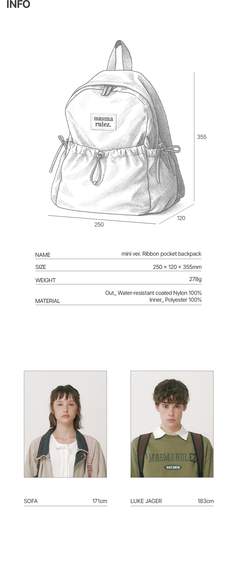 Material : [Out] Water-Resistant Coated Nylon 100% / [Inner] Polyester 100%