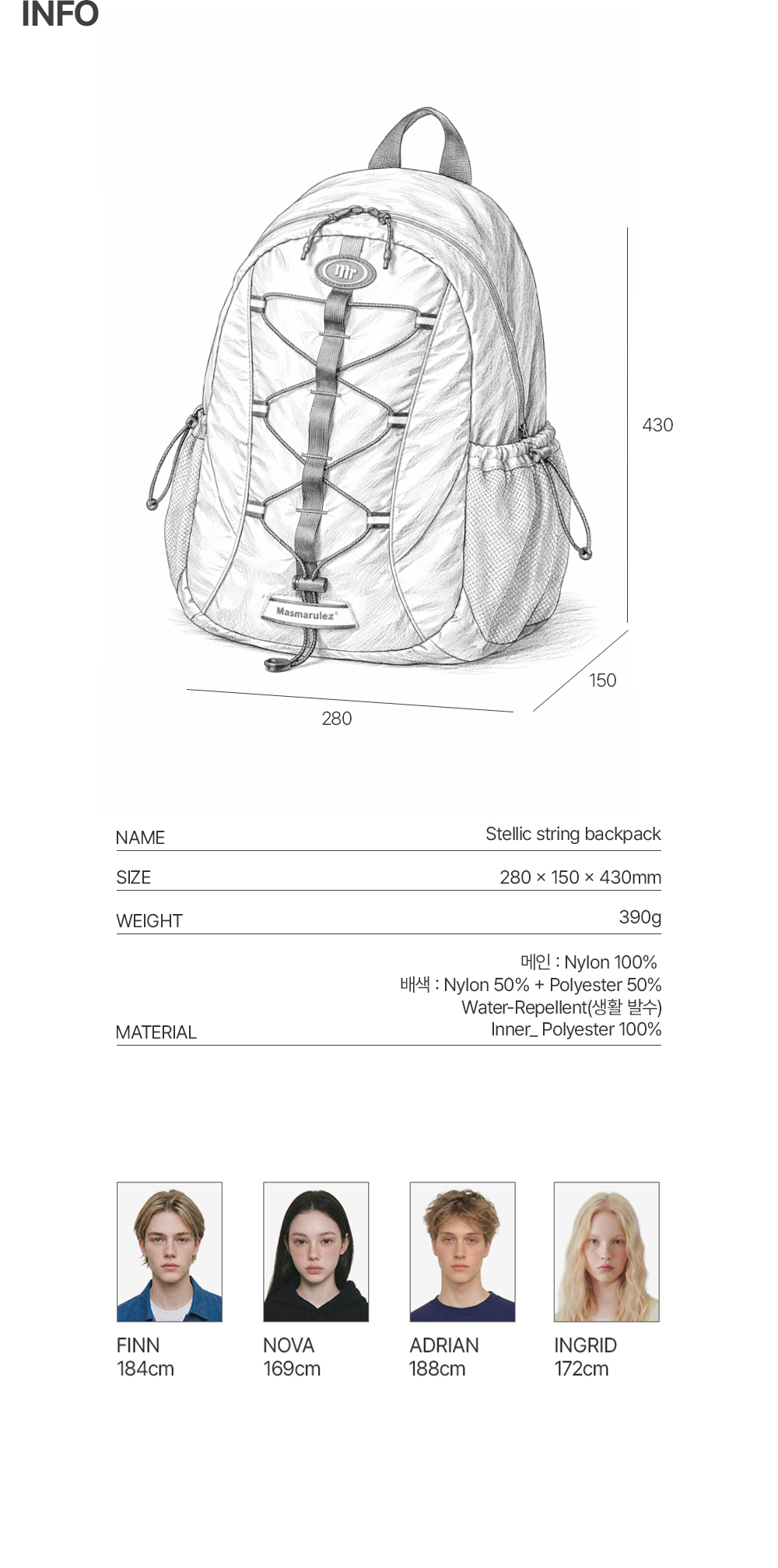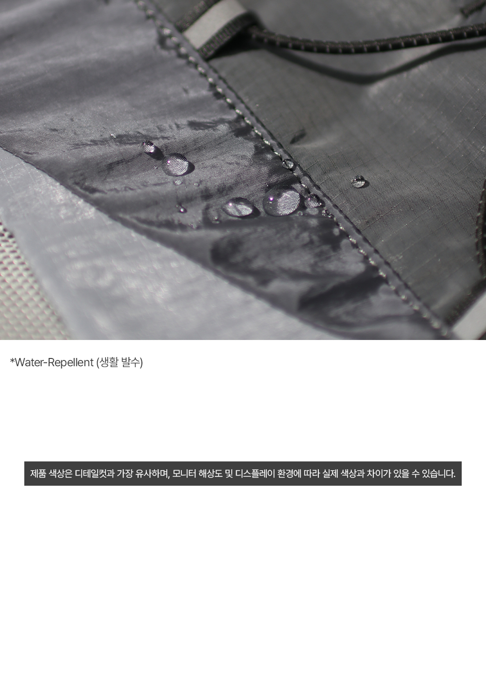 Material : [Main] Nylon 100% / [Coloring] Nylon 50% , Polyester 50% / Water-Repellent / [Inner] Polyester 100%