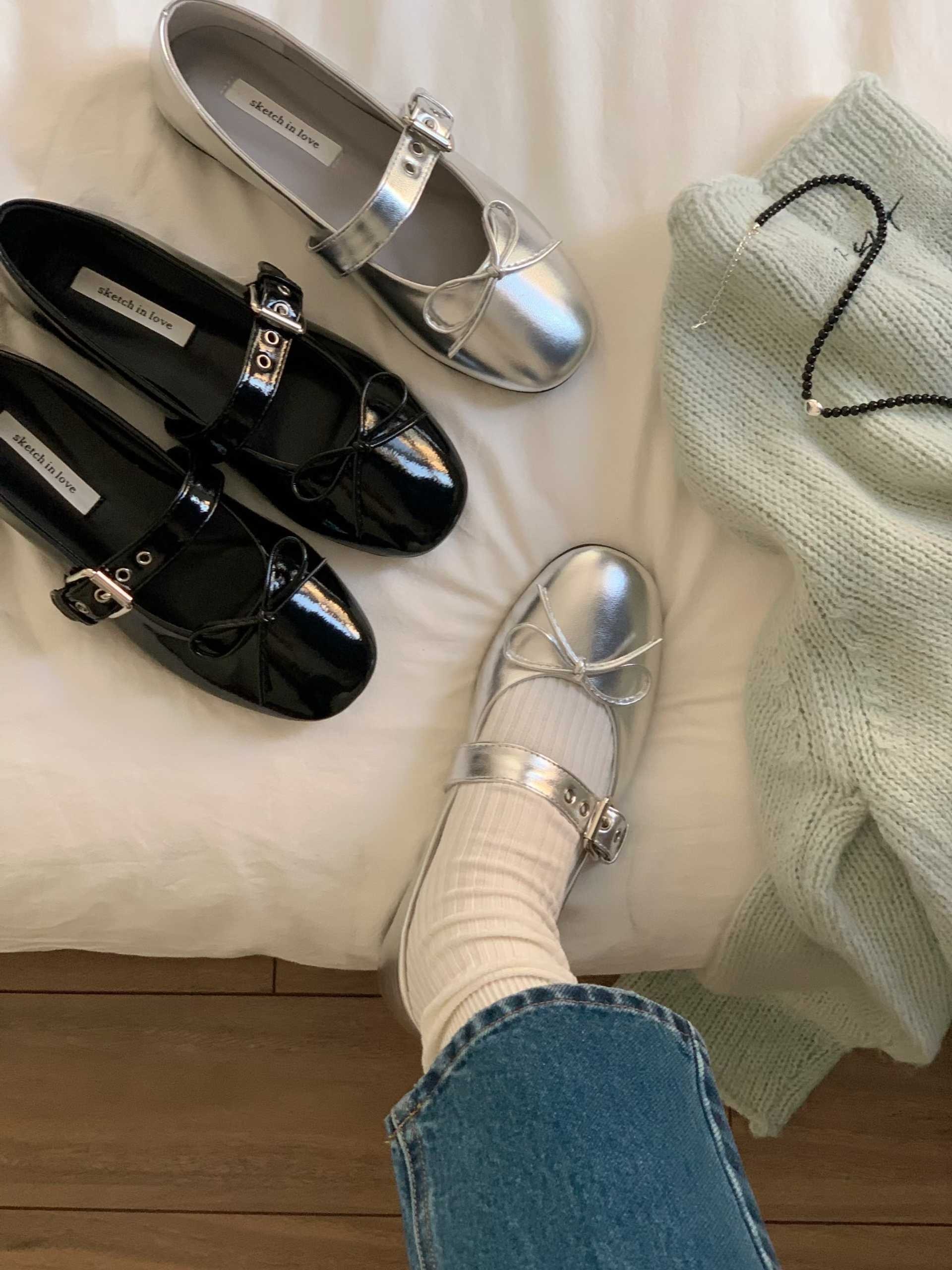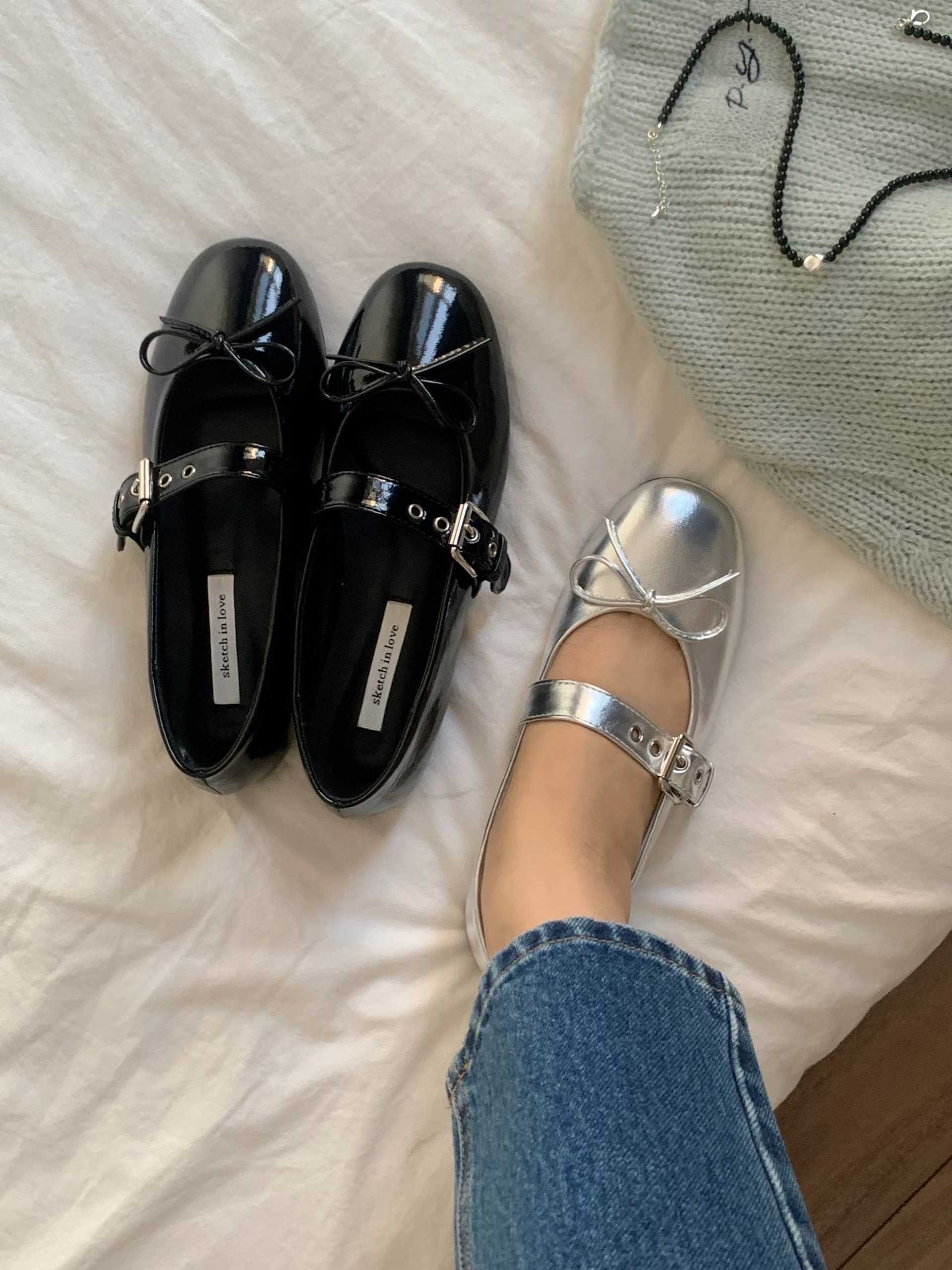 既可愛又能感受到復古感性的平底鞋。