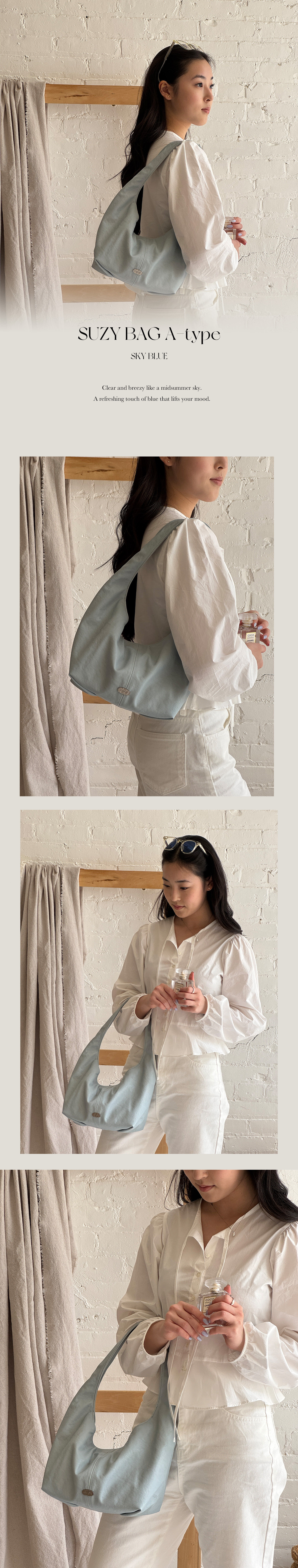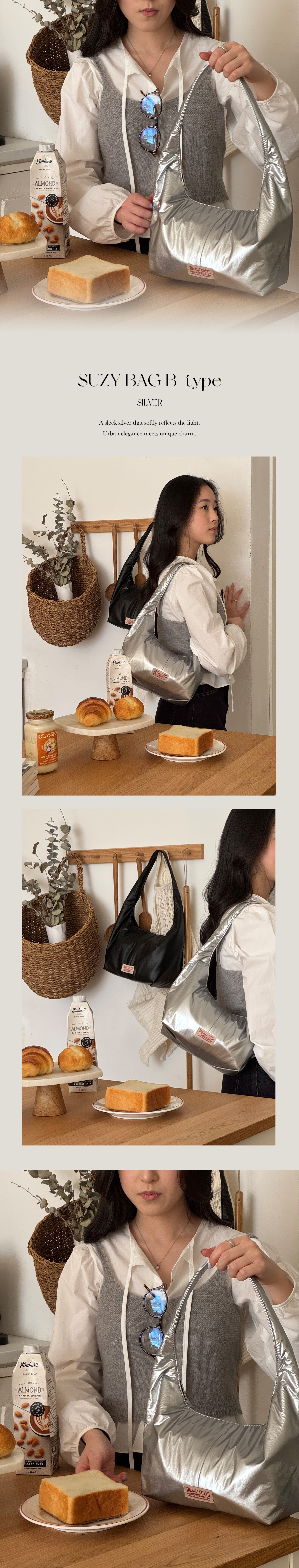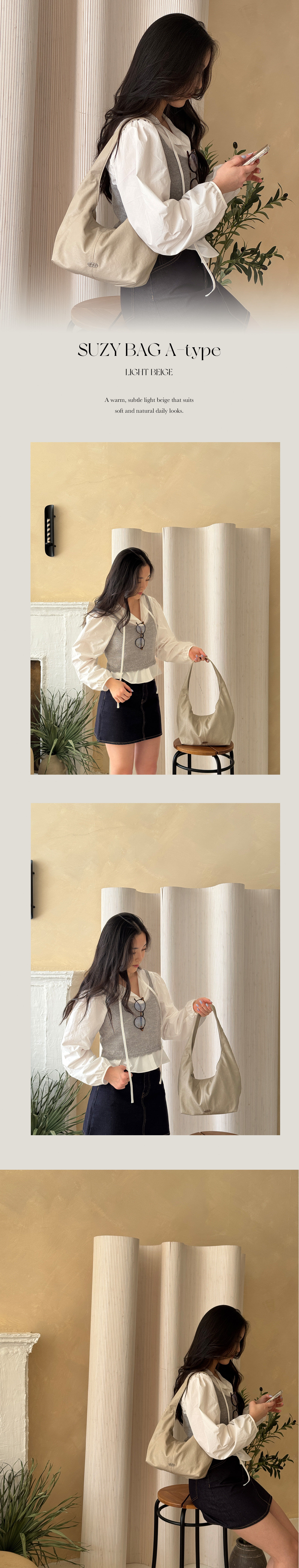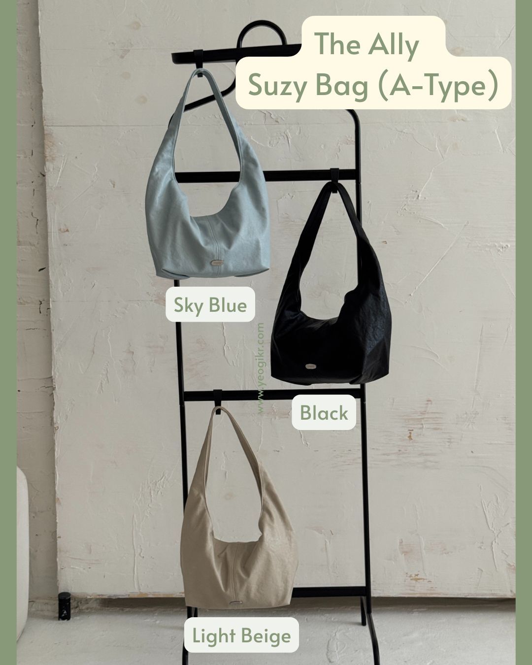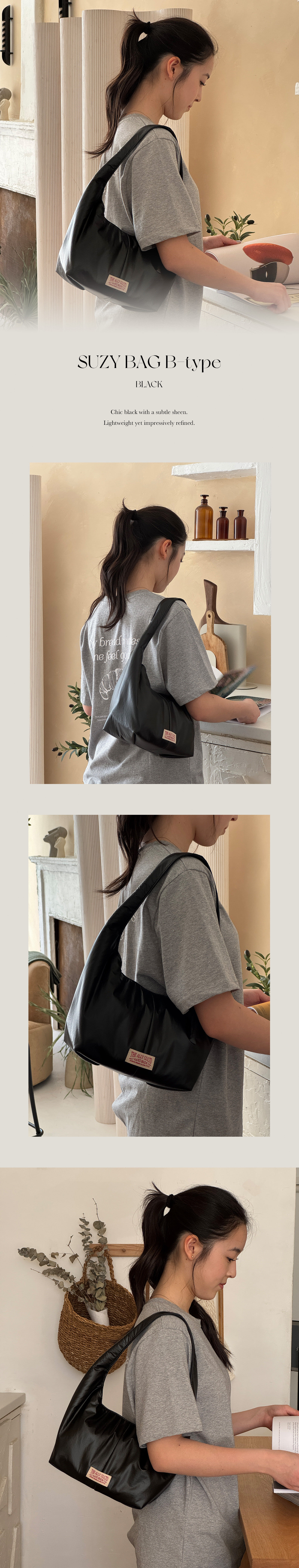 Suzy Bag是柔軟、自然、富有立體感的曲線形狀和迷你 HOBO 單肩包,分爲啞光PU材料(A型)和隱隱光澤的輕量尼龍材料(B型)兩種。 A型是自然又高檔的情調,B型是輕便又時尚的風格。
